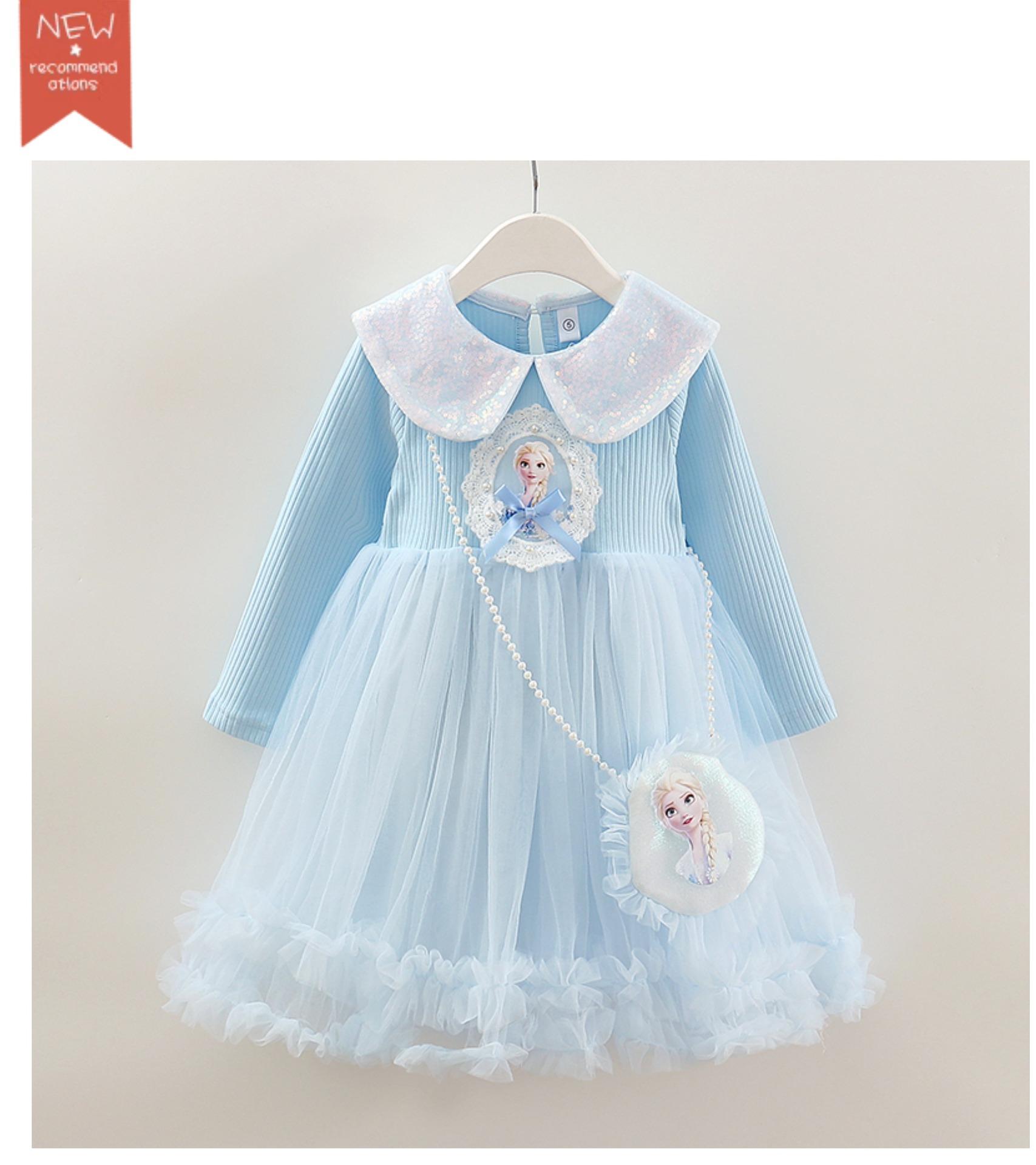 Vestido de Princesa Elsa para Niñas Ropa de Primavera y Otoño 2025 Nuevo Manga Larga Amor Gasa Vestido Puff Estilo Infantil Vestido de Pastel