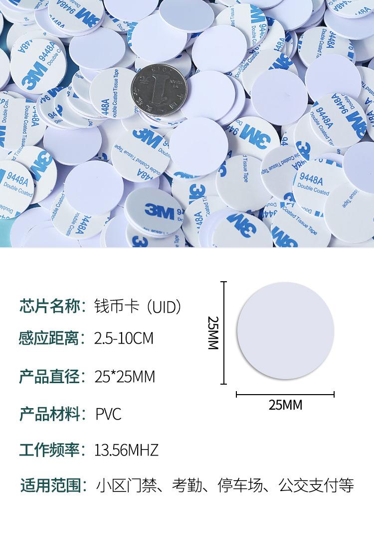 Tarjeta moneda NFC adhesiva de 13.56MHz para control de acceso IC-UID ascensor propiedad sauna tarjeta de acceso RF