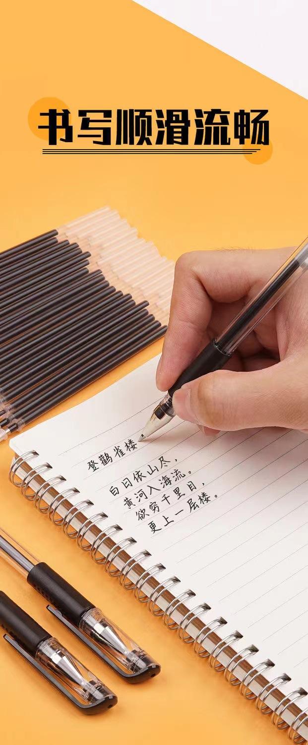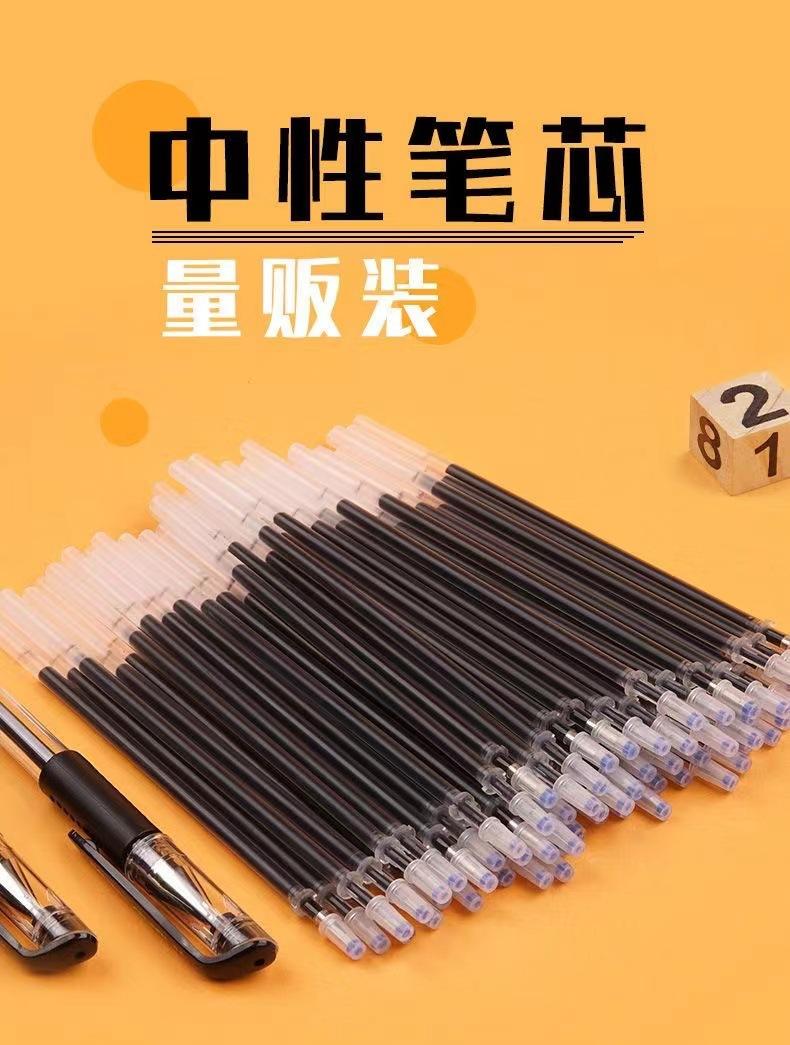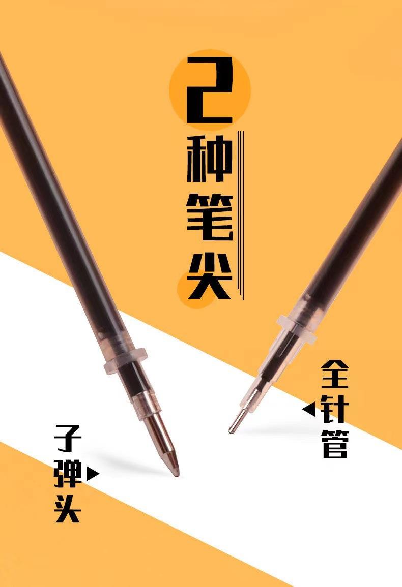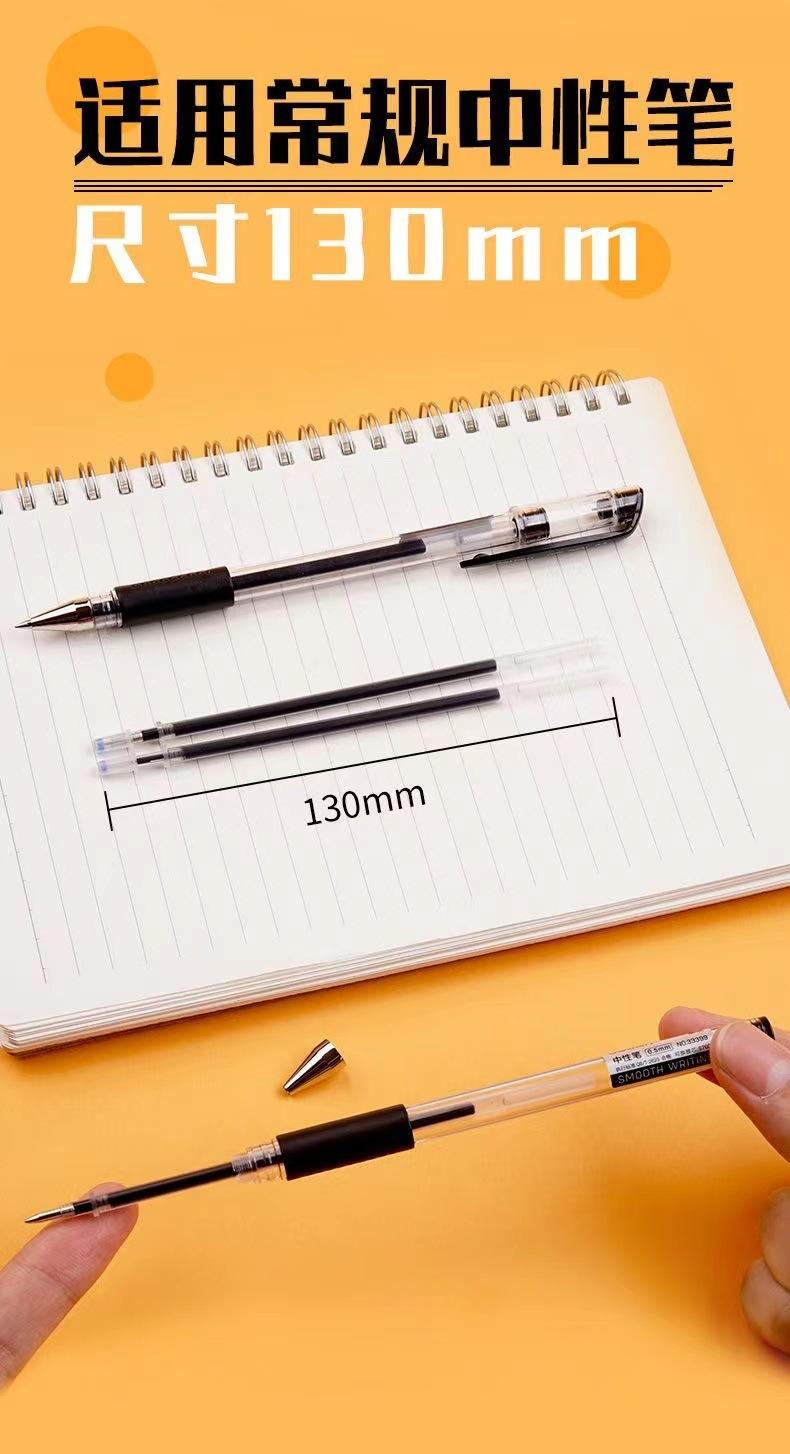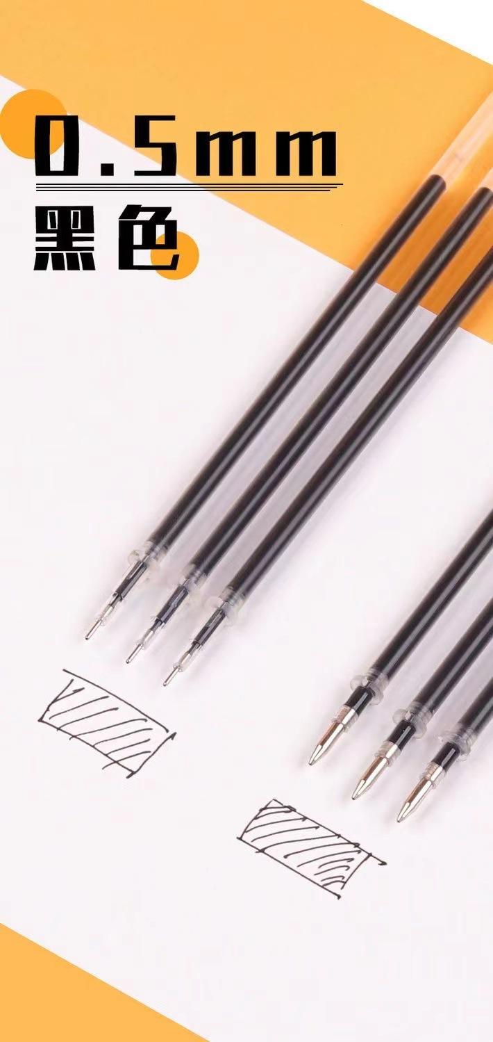 Venta al por mayor de recargas neutras de 0,5 mm, tubo de aguja completo para papelería de oficina para estudiantes, recarga de carbono negro de 0,38 mm.
