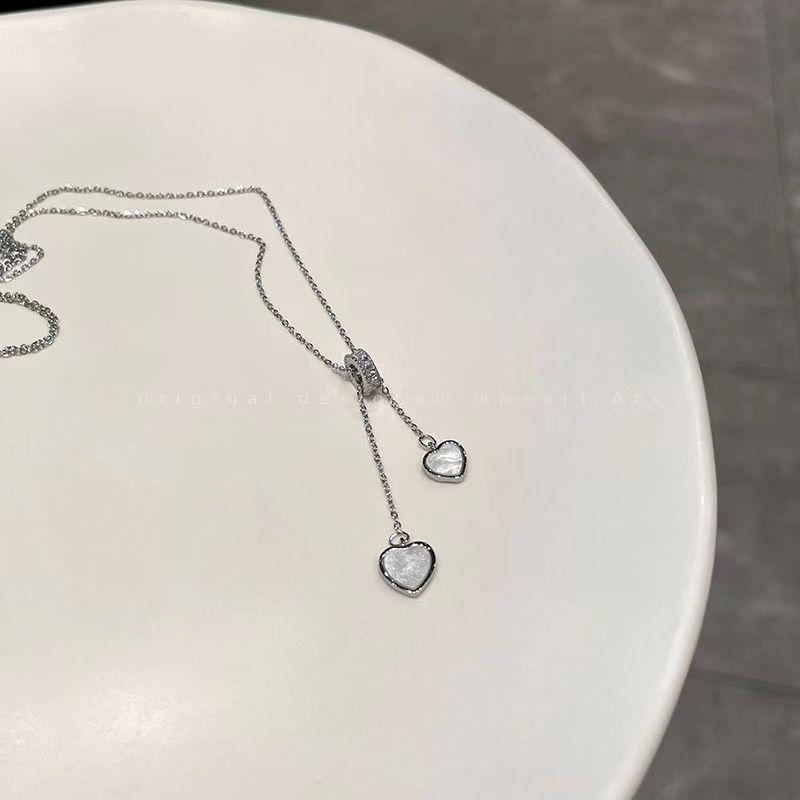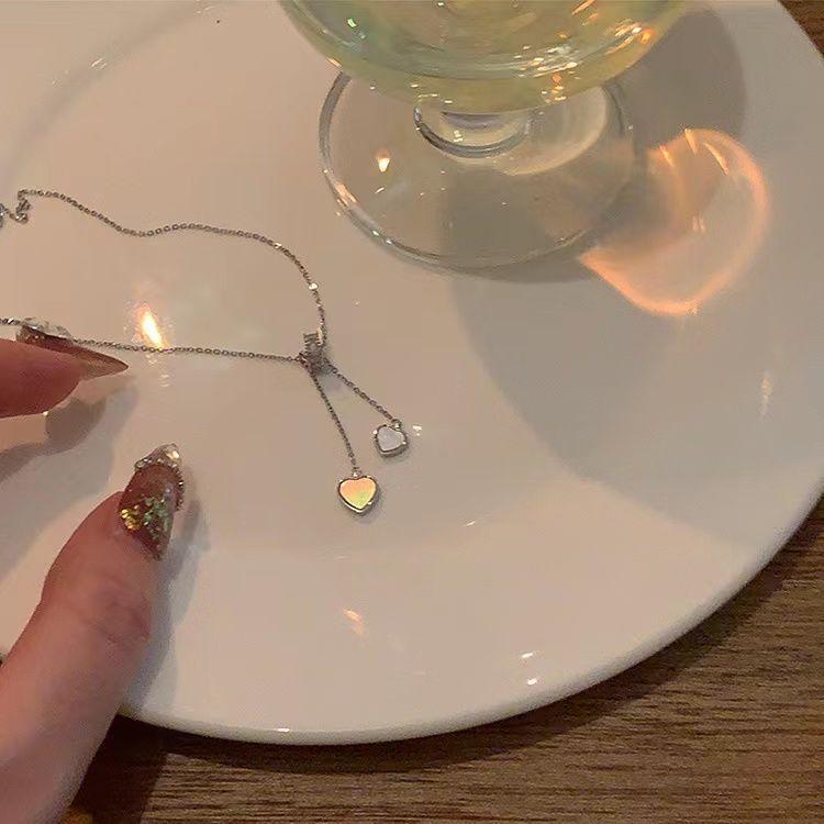 Collar con colgante de concha de amor para niña, cadena de clavícula con borlas de verano, diseño de nicho ligero de lujo, accesorios avanzados, cadena de collar