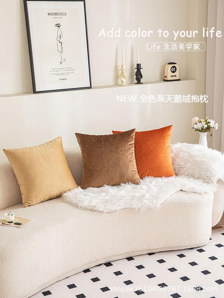 Cojín de terciopelo para sala de estar, sofá, almohada de cintura, simple, moderno, cuadrado, de color sólido, funda de almohada de felpa, venta al por mayor