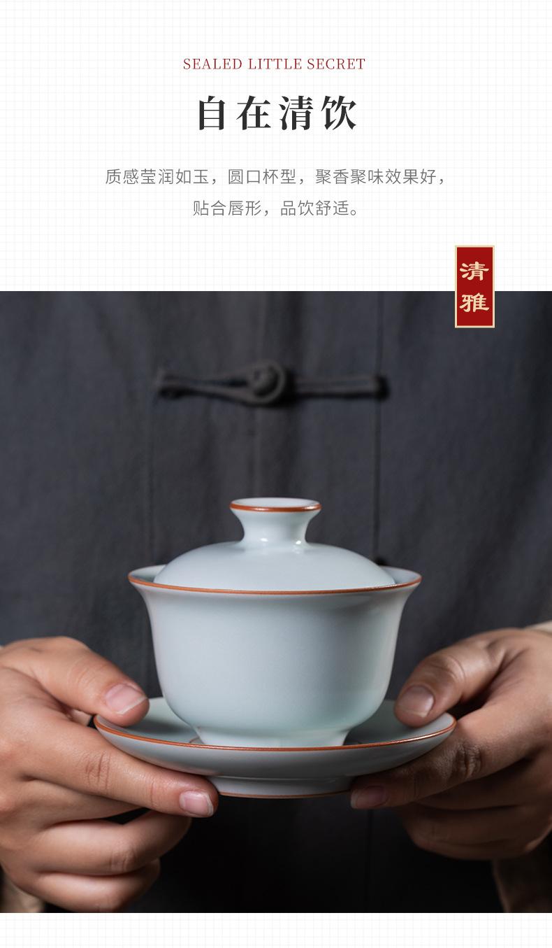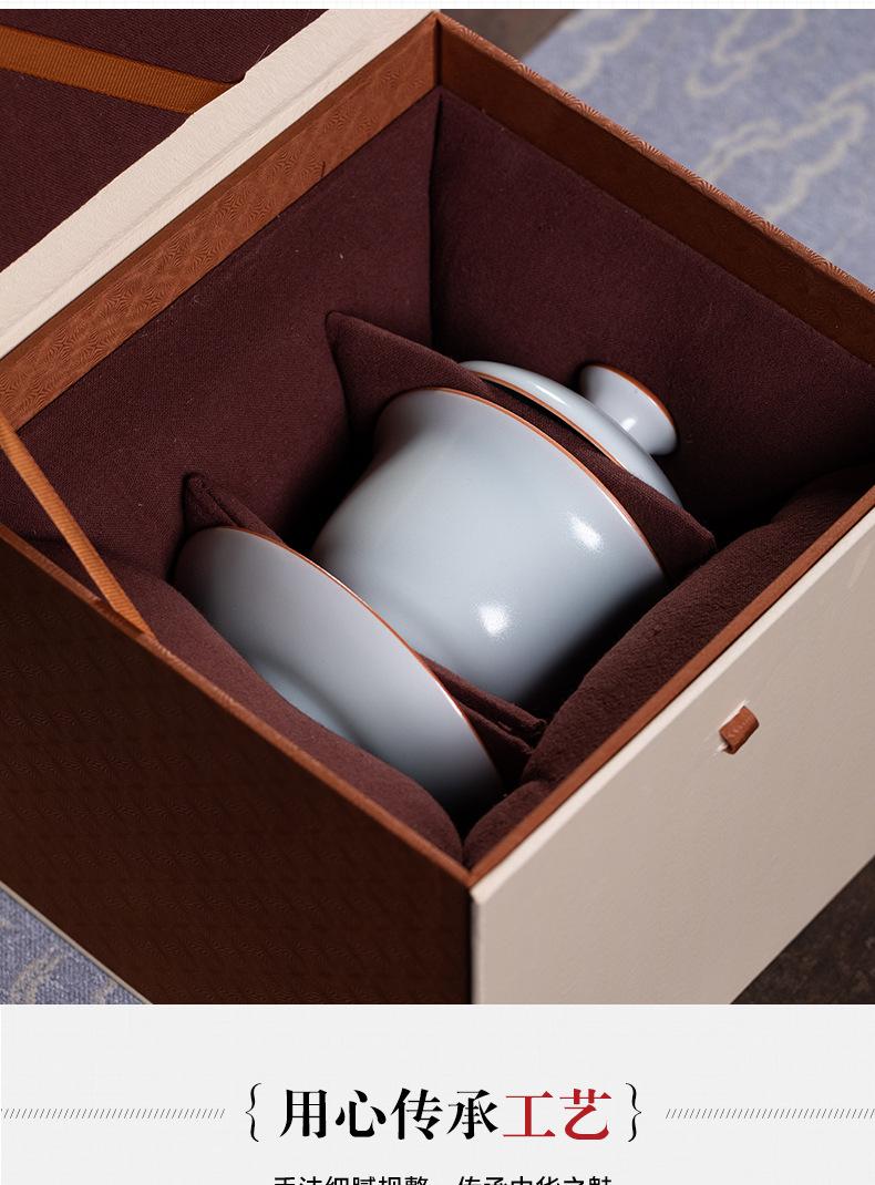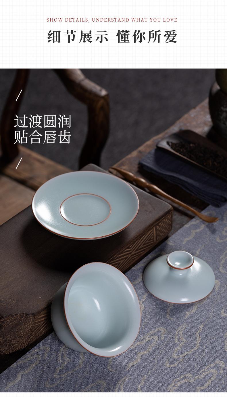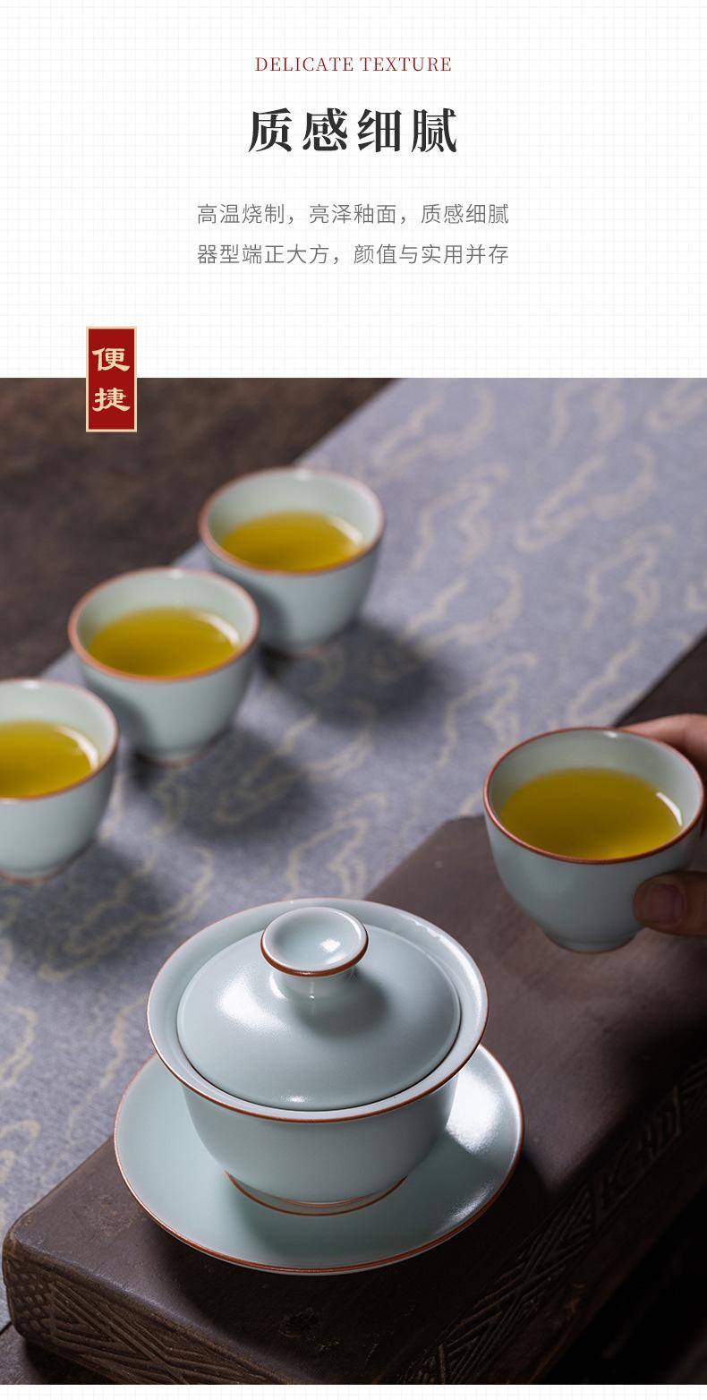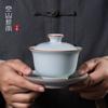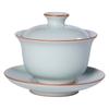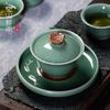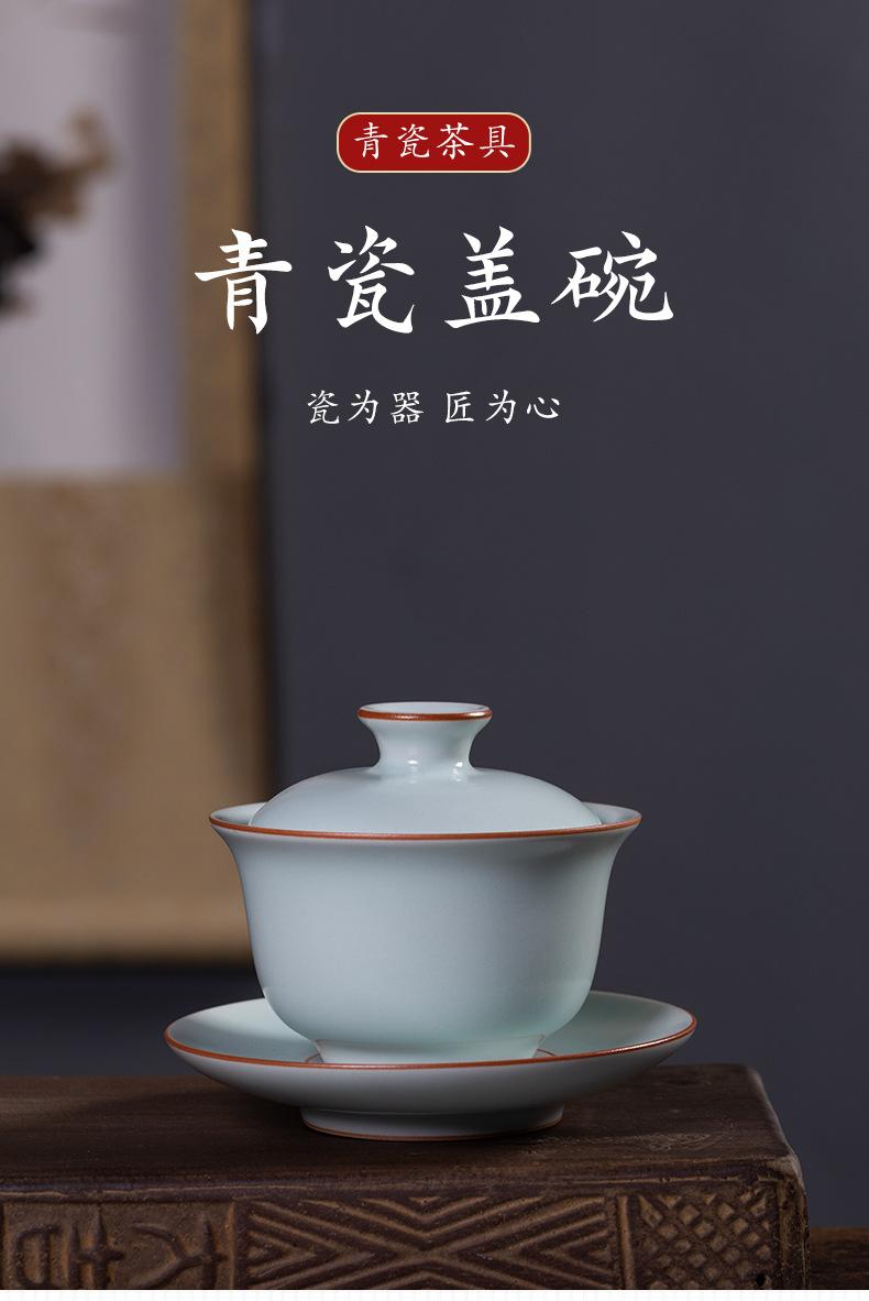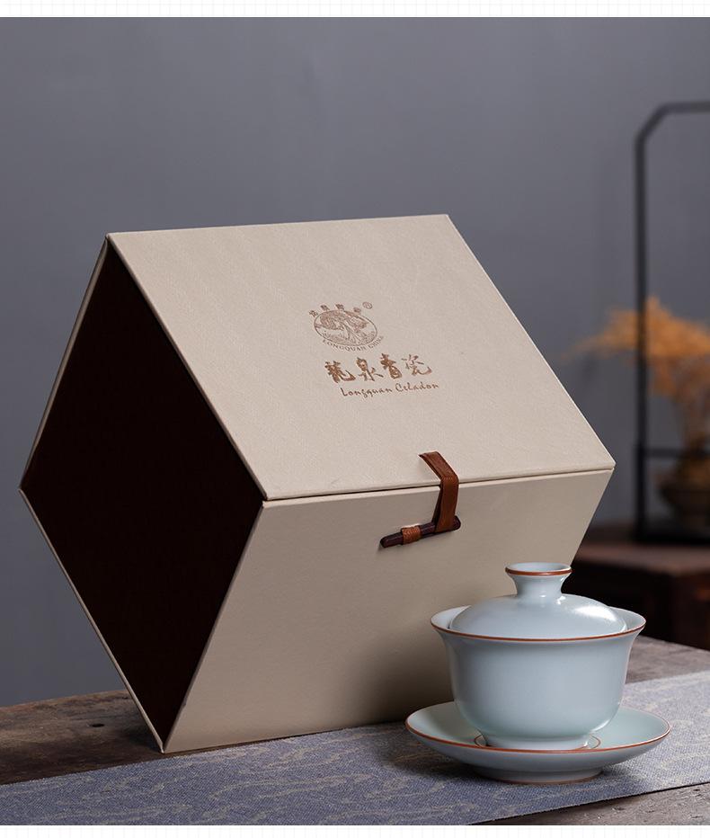 Kong Shan Xinyu Celadón Longquan Tres Tapa Tazón Juego de Té Kung Fu Tazón de Té Cerámica de Alta Gama Hecho a Mano Tetera