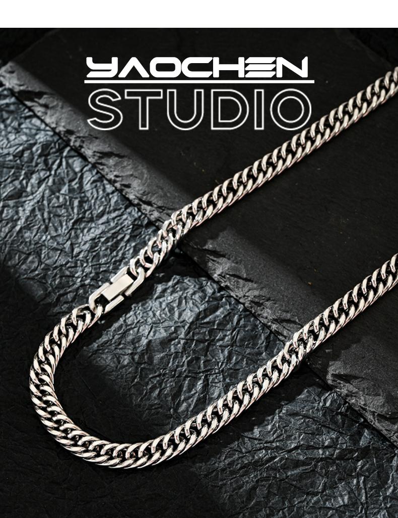 Collar de cadena cubana mejorado, estilo hip hop para hombres y mujeres, cadena de clavícula para niños y niñas, accesorios de cadena de acero y titanio que combinan con todo.