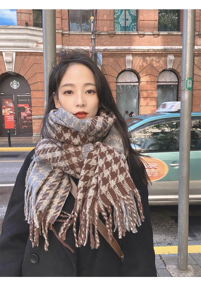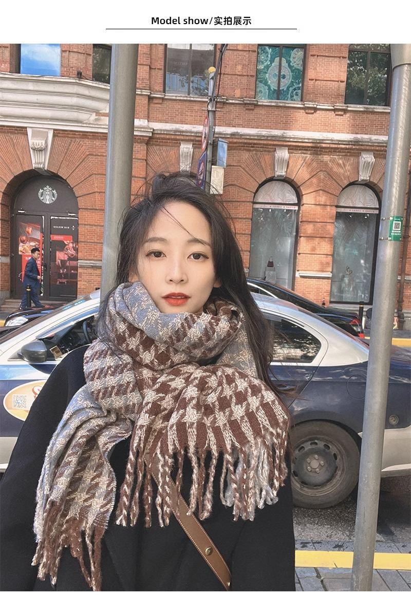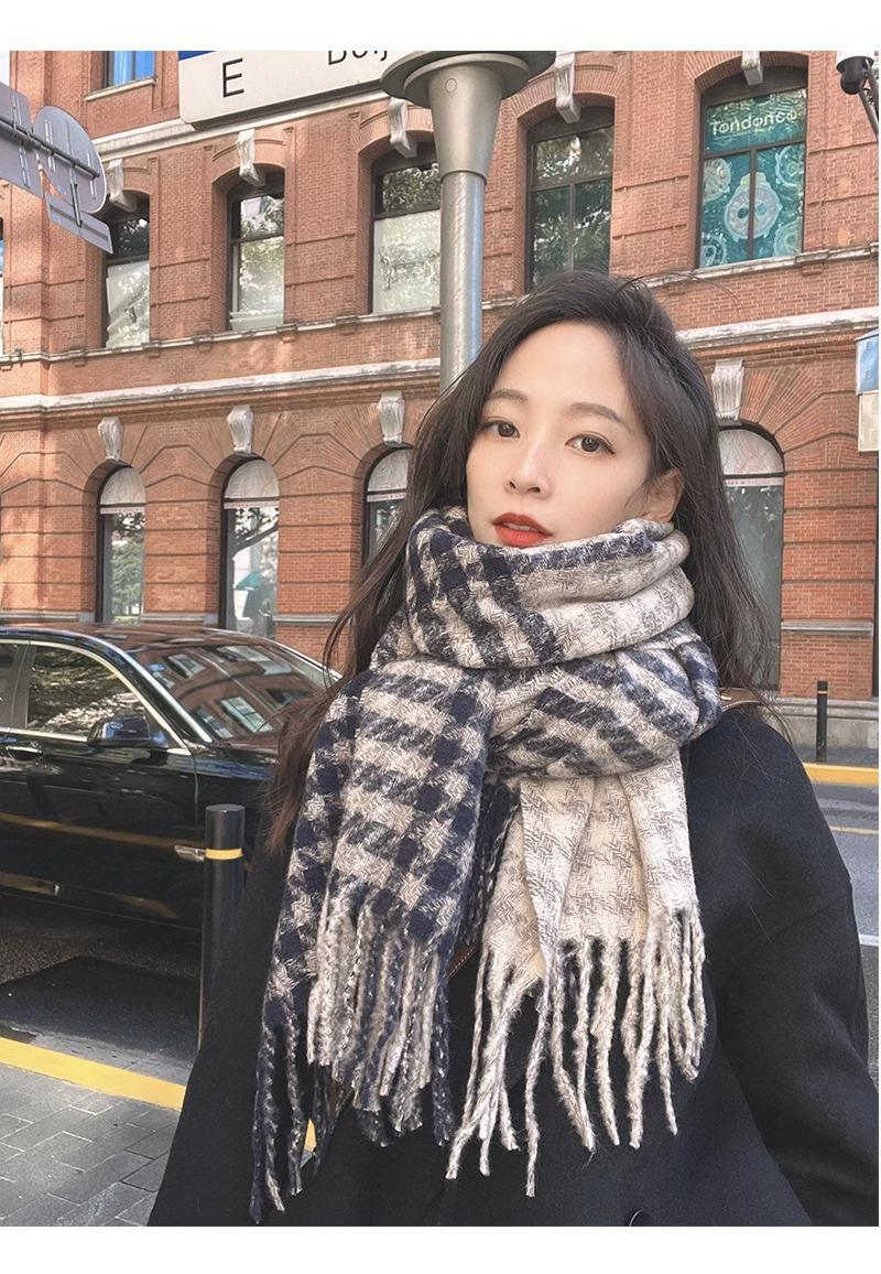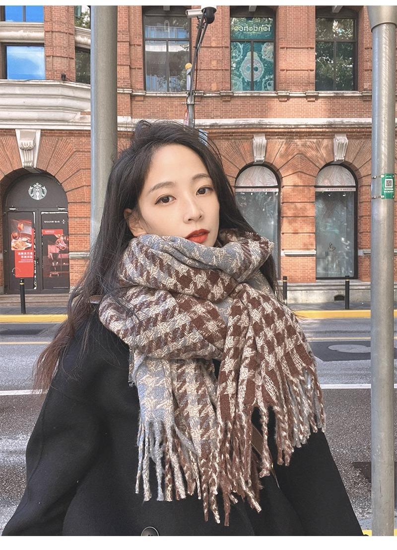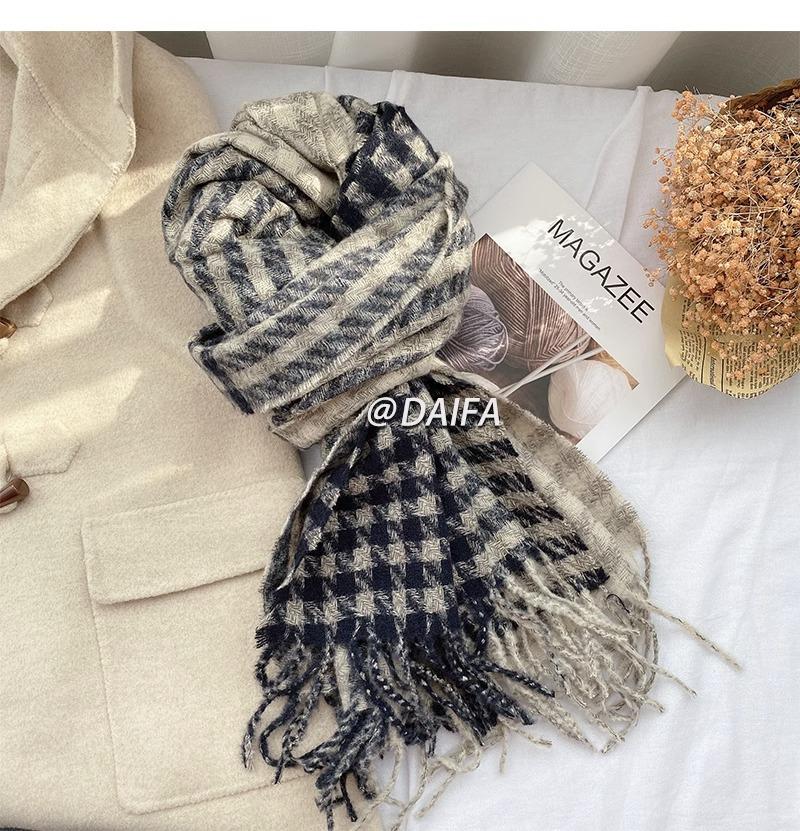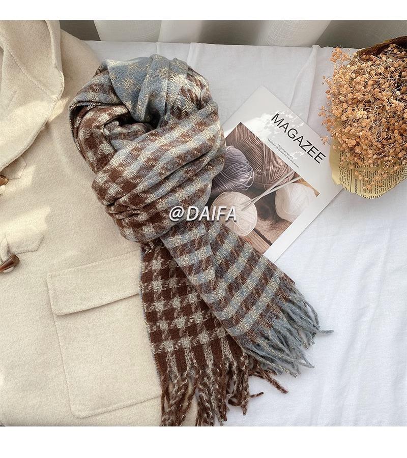 Bufanda para Mujer Otoño e Invierno Estilo K Versátil Larga Engrosada Cálida Imitación Cachemira Bufanda Cuadros Ins Estudiante Pata de Gallo