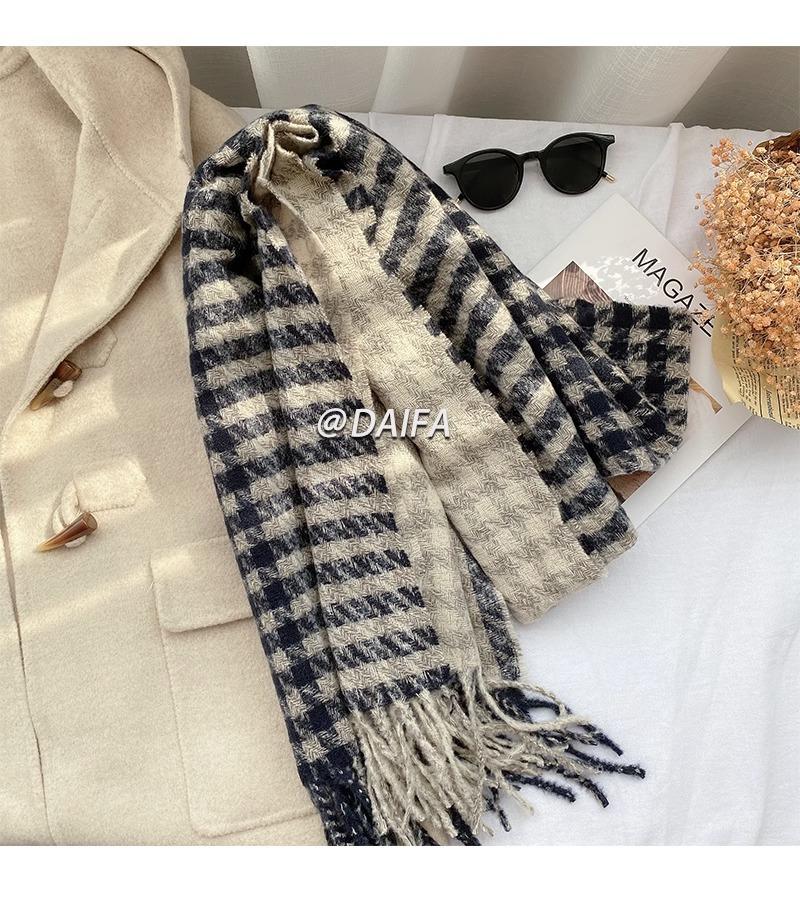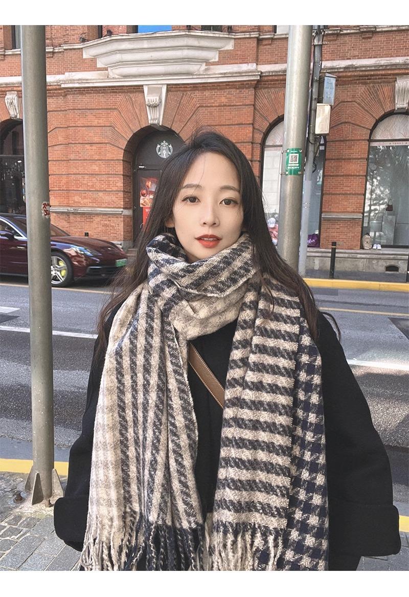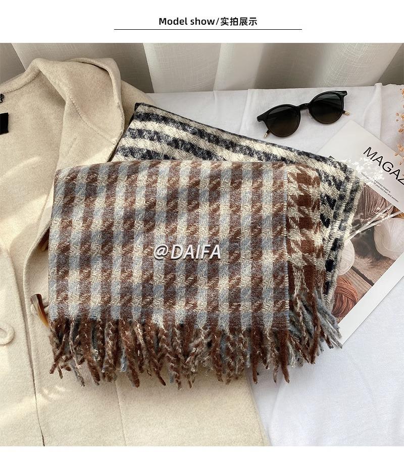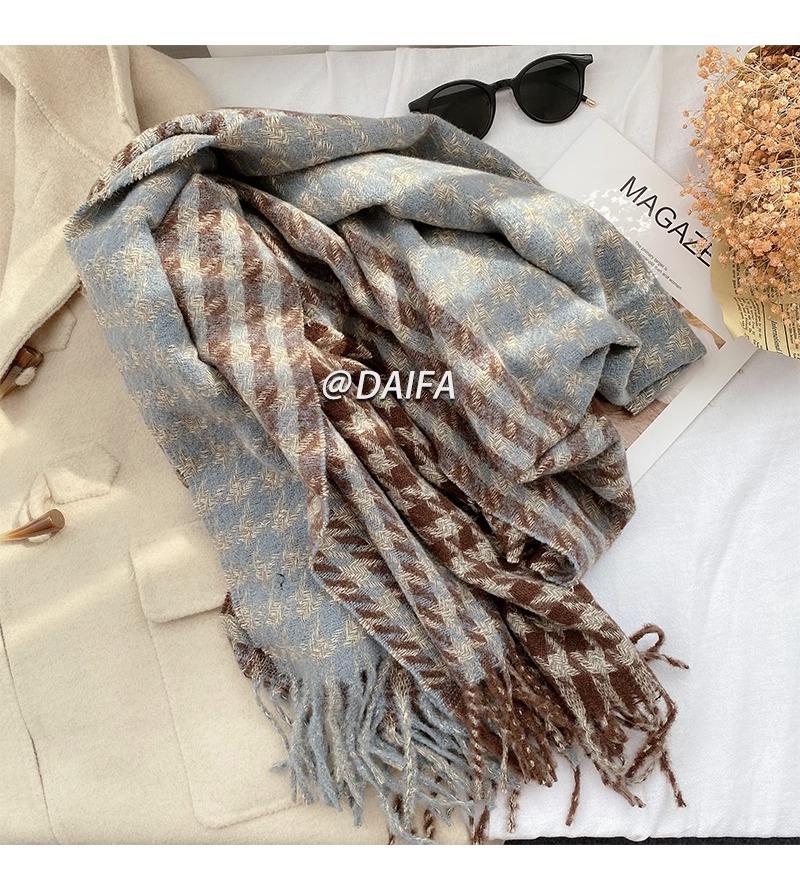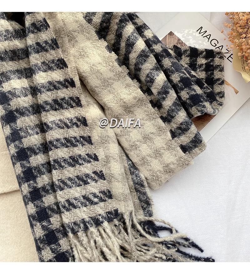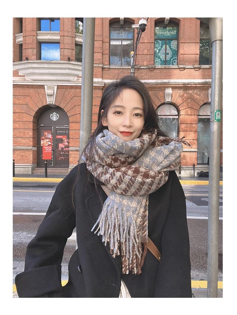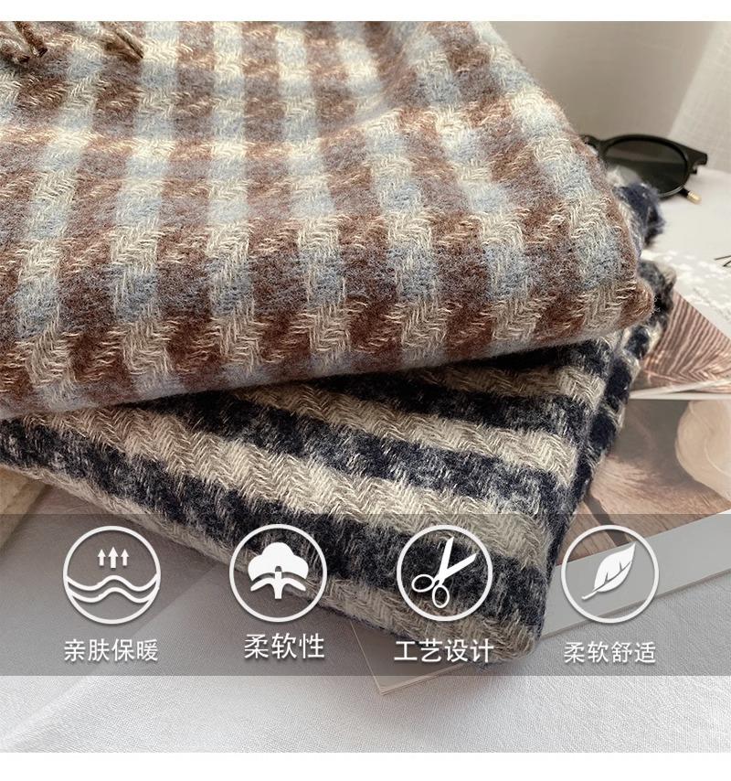 Bufanda para Mujer Otoño e Invierno Estilo K Versátil Larga Engrosada Cálida Imitación Cachemira Bufanda Cuadros Ins Estudiante Pata de Gallo