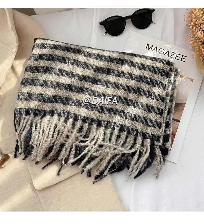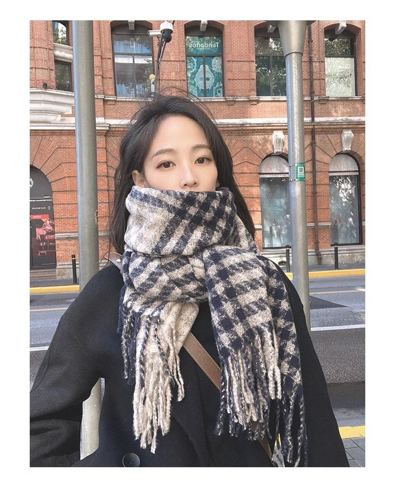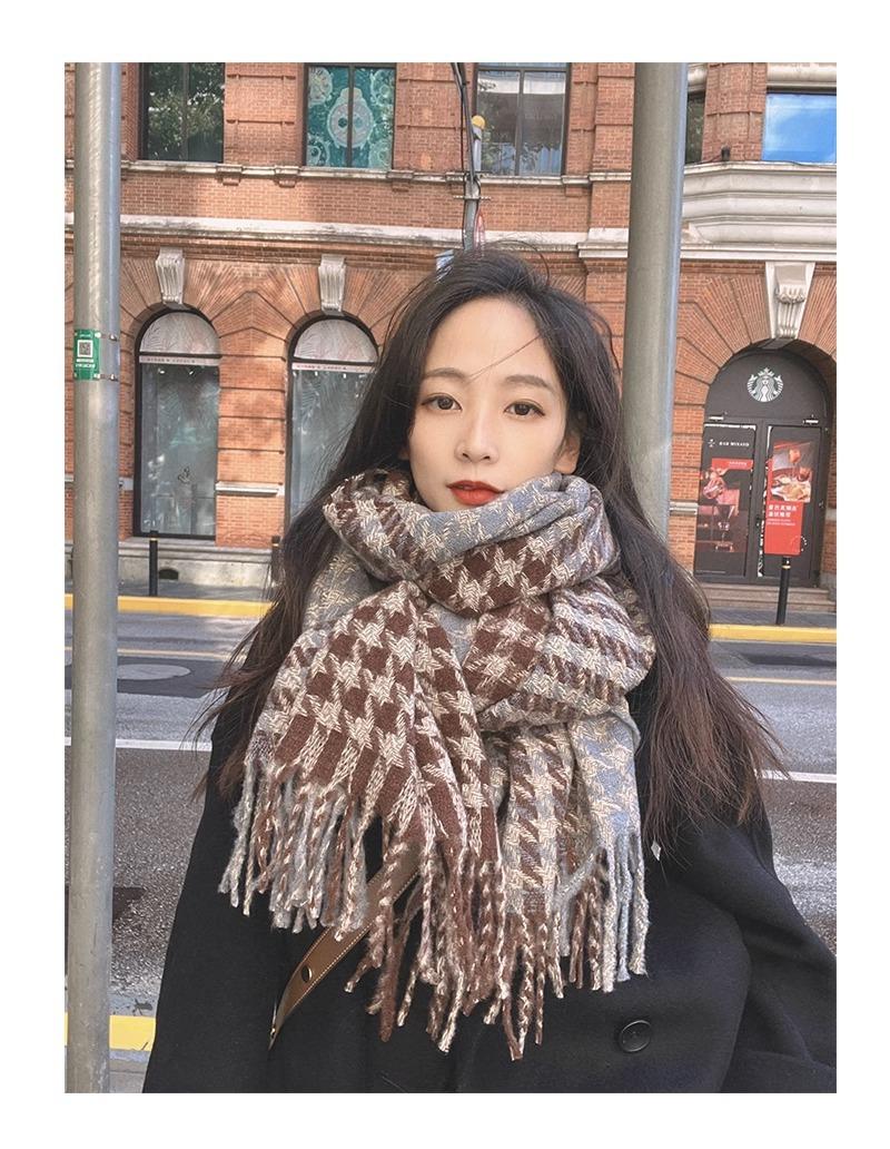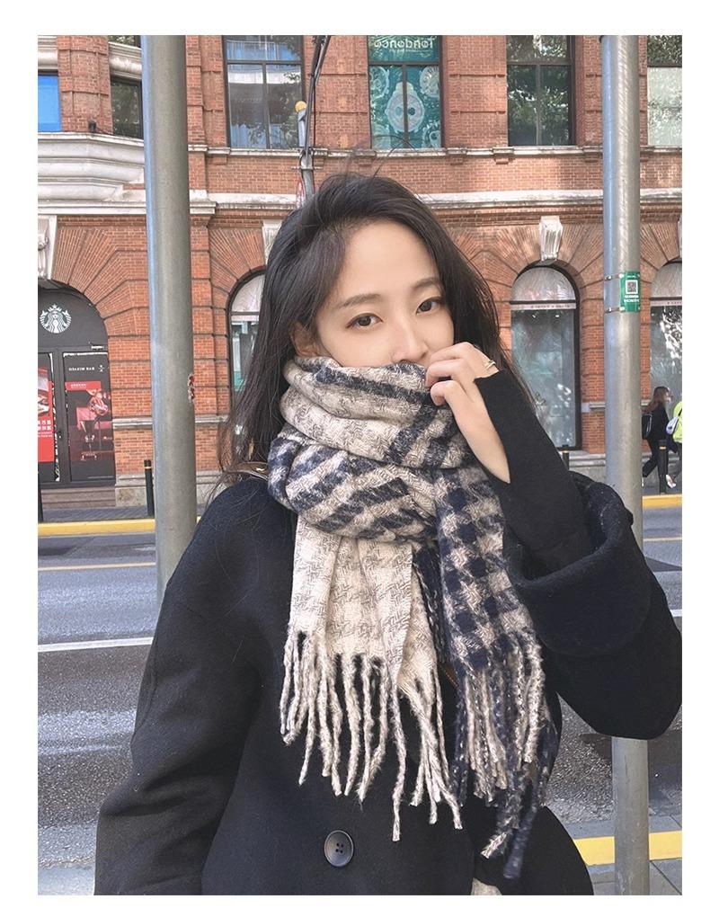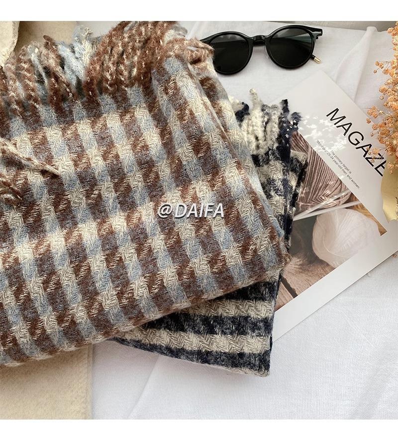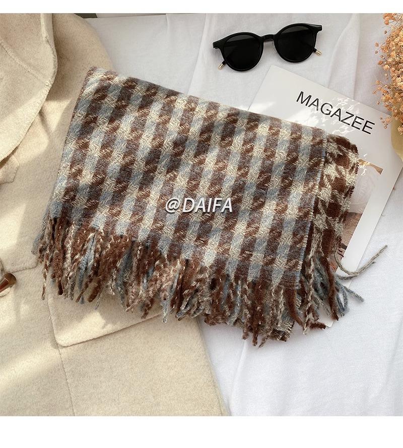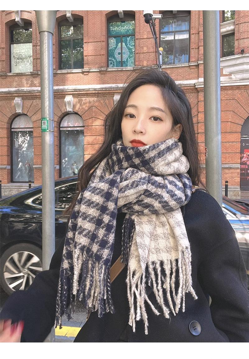 Bufanda para Mujer Otoño e Invierno Estilo K Versátil Larga Engrosada Cálida Imitación Cachemira Bufanda Cuadros Ins Estudiante Pata de Gallo