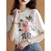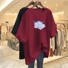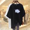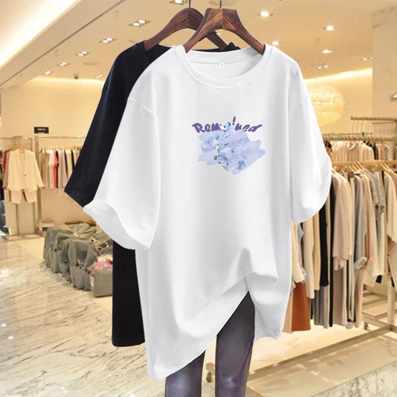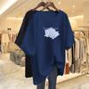 Camiseta holgada de verano con cuello redondo, manga corta, versátil, informal, de talla grande, con estampado de letras adelgazantes para mujer
