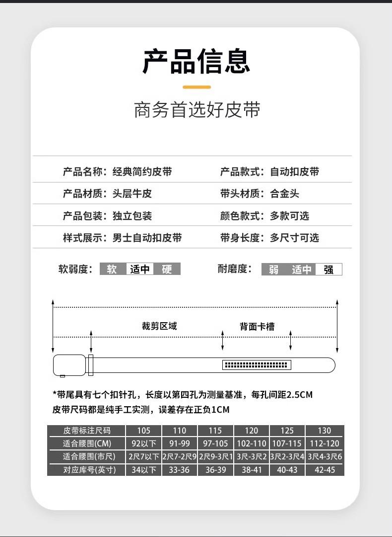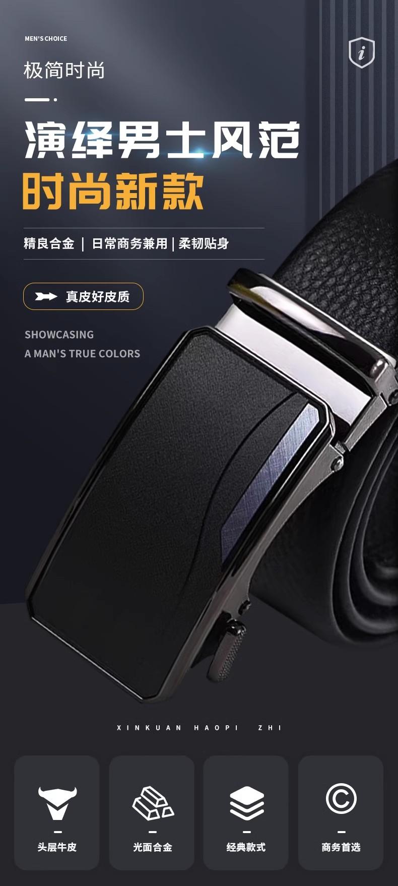 Nuevo Cinturón para Hombre de Piel de Vaca de Primera Capa de Grado Empresarial, Cinturón de Cuero Genuino con Hebilla Automática Versátil de Alta Gama, Venta al por Mayor en Stock