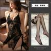 No need to take off, leaky back sm suspender nightgown, black + black crotchless socks