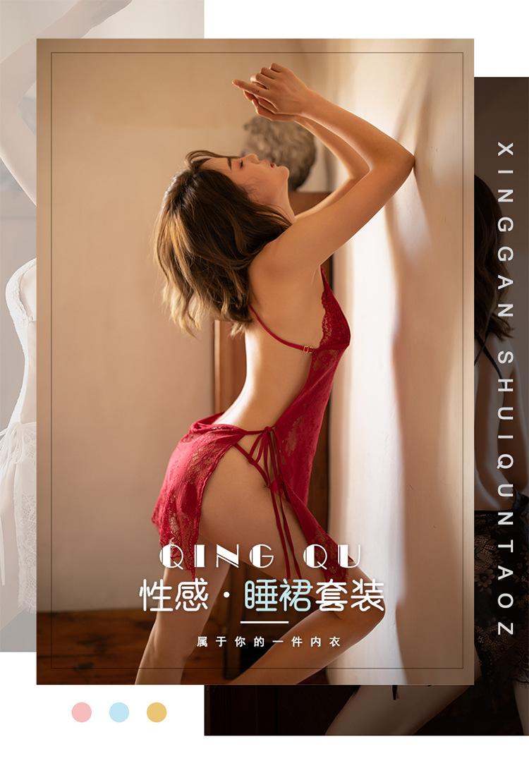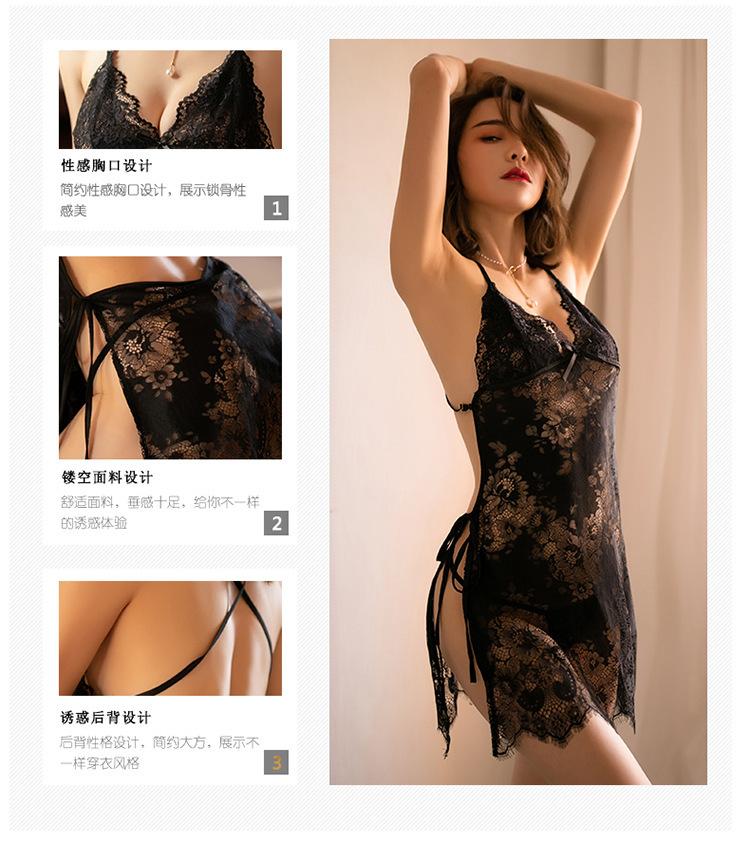 Lencería sexy sin espalda para mujer, pijamas sexys, traje halter de encaje transparente seductor, camisón, venta al por mayor, entrega 028