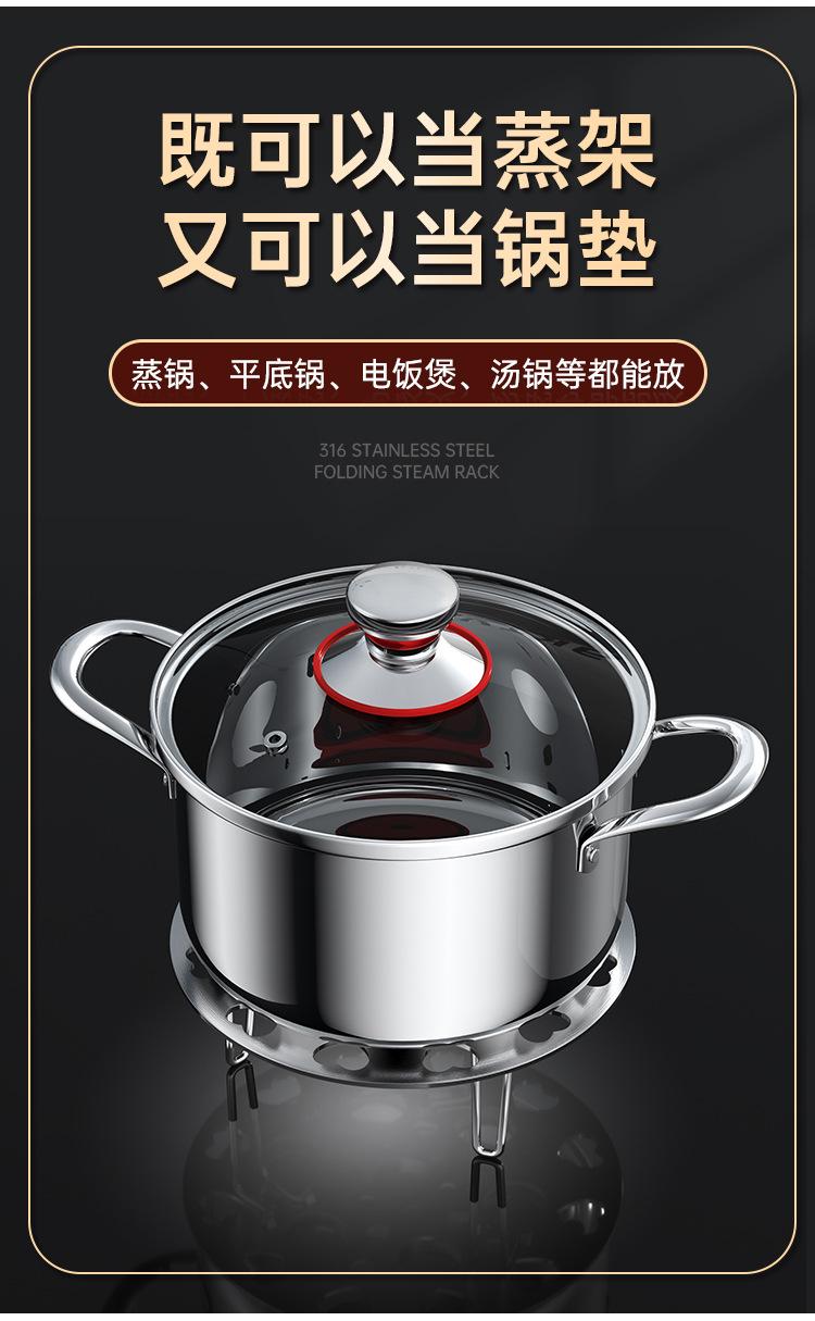 Vaporera de pie alto de acero inoxidable 304 vaporera plegable vaporera grande vaporera redonda vaporera pequeña vaporera para huevos