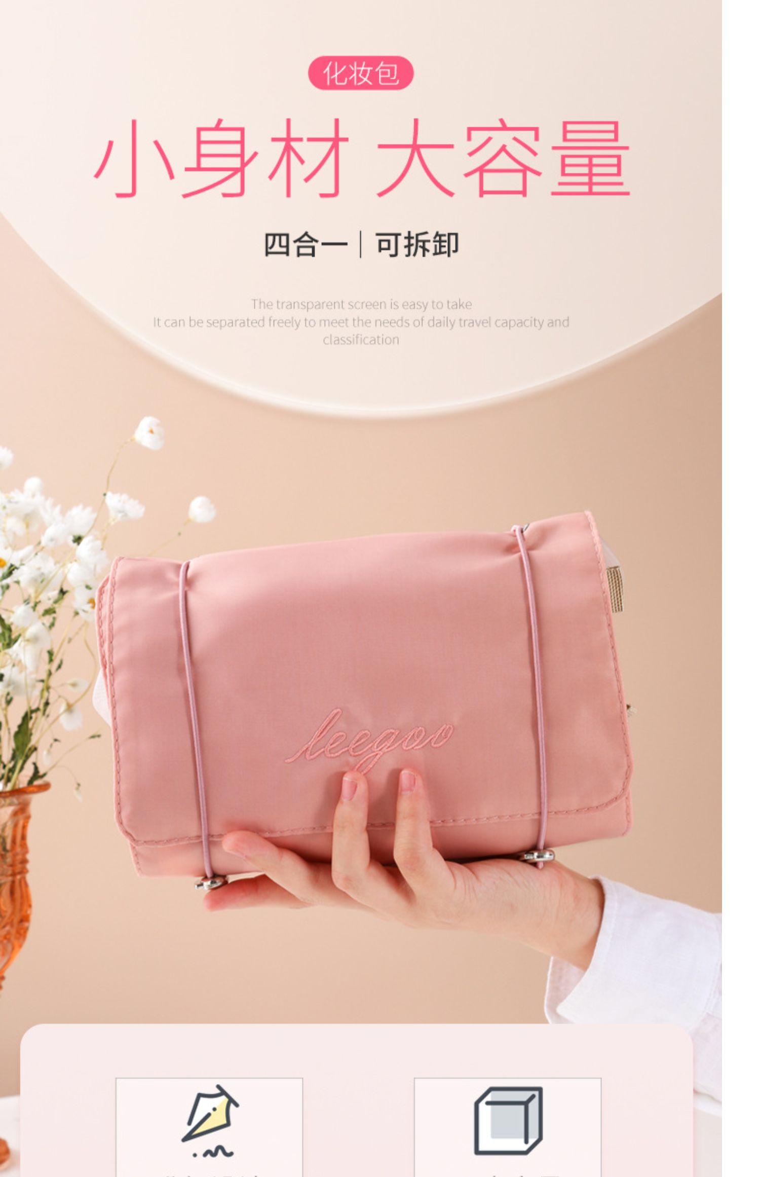 Nueva bolsa de cosméticos cuatro en uno desmontable para mujer, portátil, de viaje, de gran capacidad, para guardar cosméticos de alto valor.
