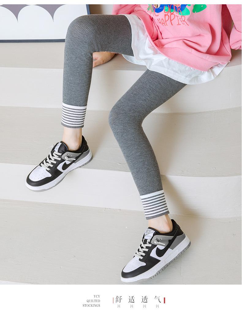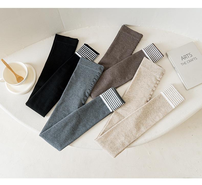 Pantalones de Nueve Puntos para Niños de Estilo Otoño 2023 con Piernas de Algodón y Rayas Horizontales, Leggings Exteriores Simples para Niños Pequeños y Medianos
