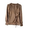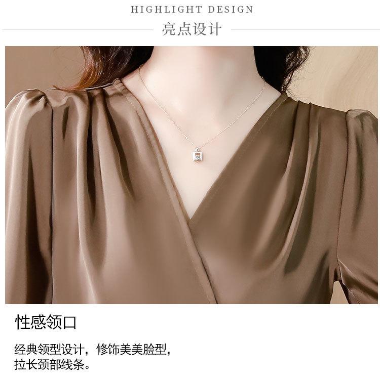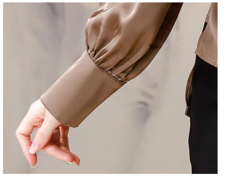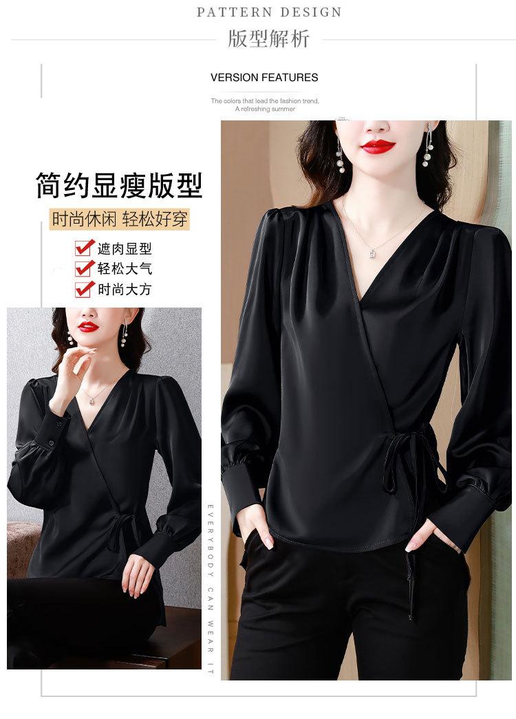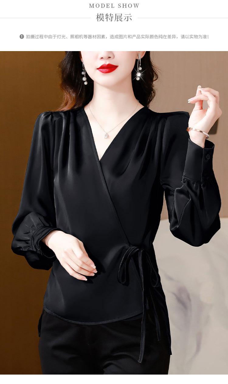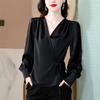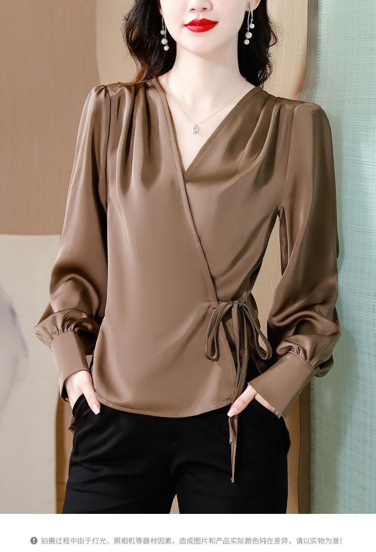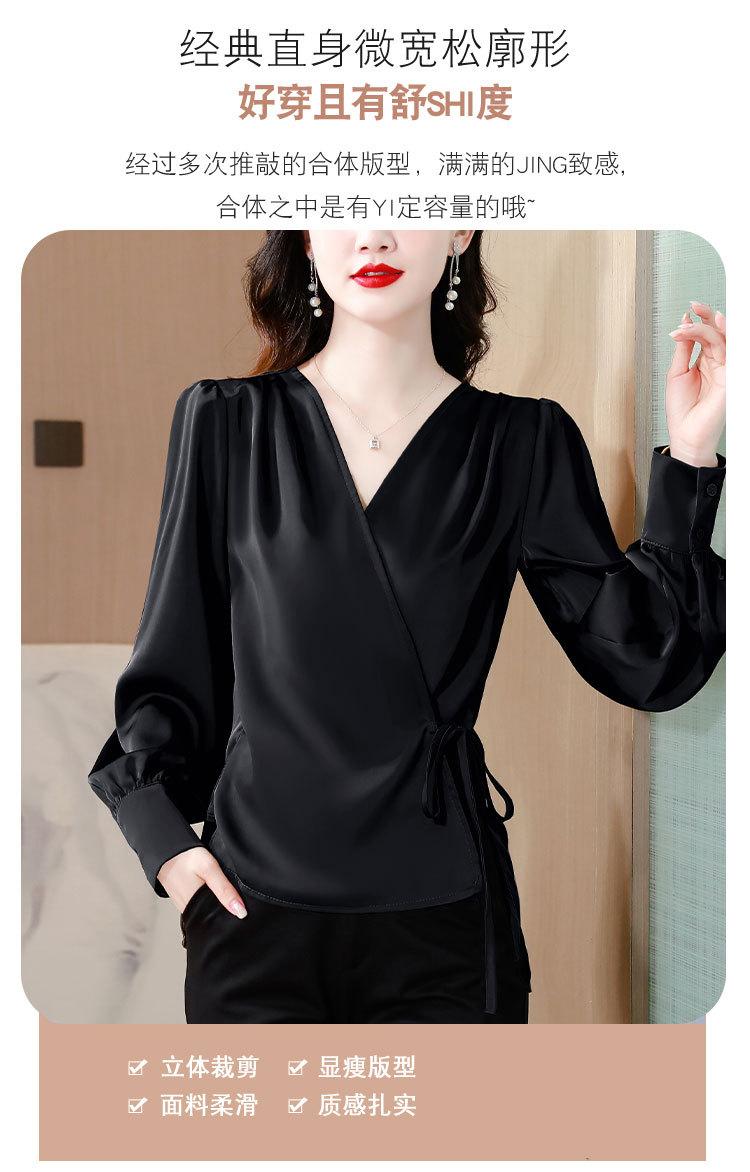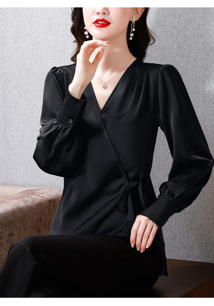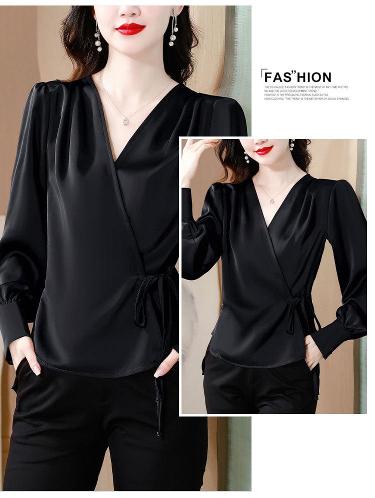 Compra Camisa versátil de manga larga con cuello en V y cordones estilo coreano para mujer 2024 primavera nueva moderna elegante estilo occidental camisa básica de satén al por mayor en Joom.pro