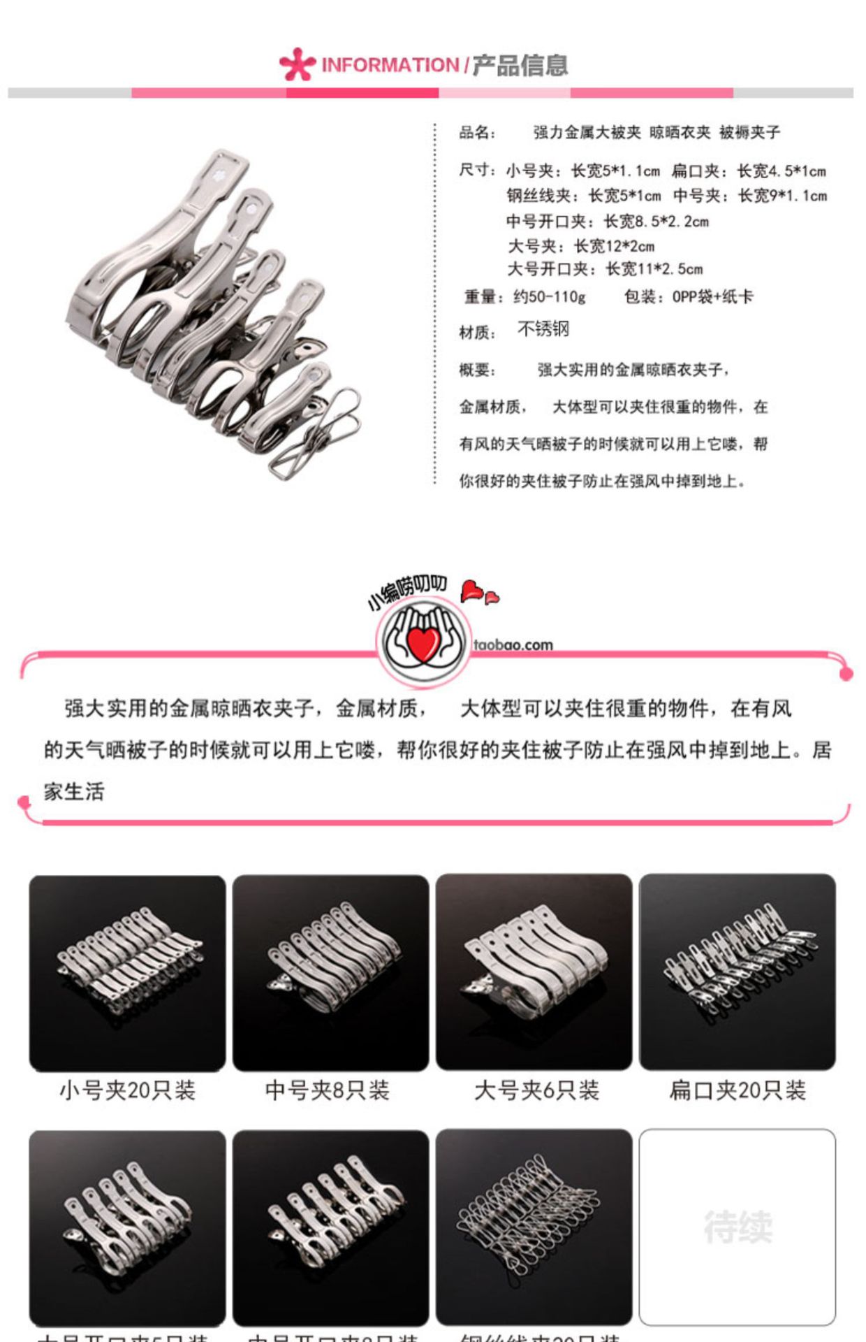 Clip abierto tamaño mediano 500 paquetes/caja Clip abierto tamaño grande 300 paquetes/caja Clip para edredón tamaño grande 250 paquetes/caja