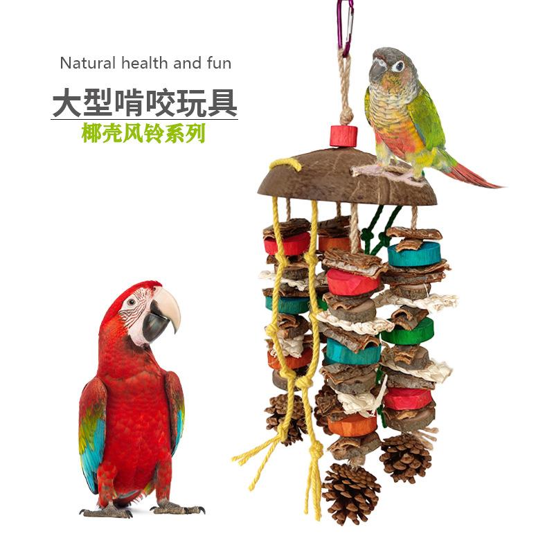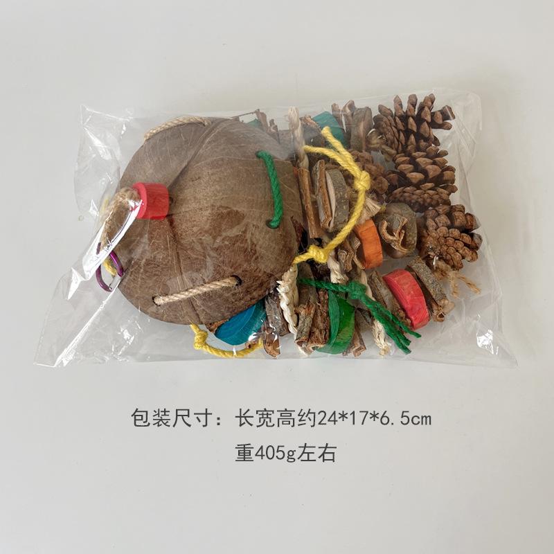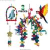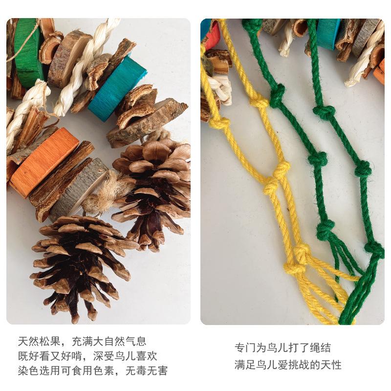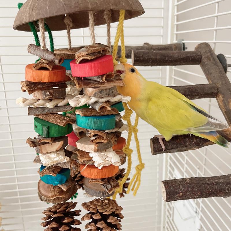 Juguete para Loro Molienda de Pico Mordida Aves Medianas y Grandes Romper y Destruir Bloques de Madera Sólida Combinación de Corteza Colgante Decorativo Colorido