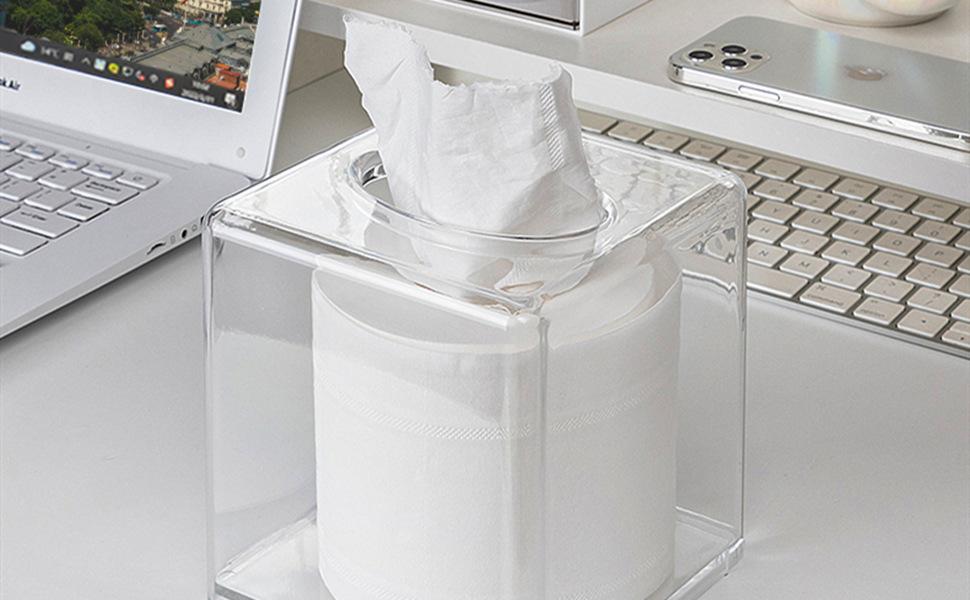 Caja de pañuelos de acrílico transparente transfronterizo, caja de almacenamiento de pañuelos, caja de papel higiénico para servilletas de cocina de escritorio para restaurante
