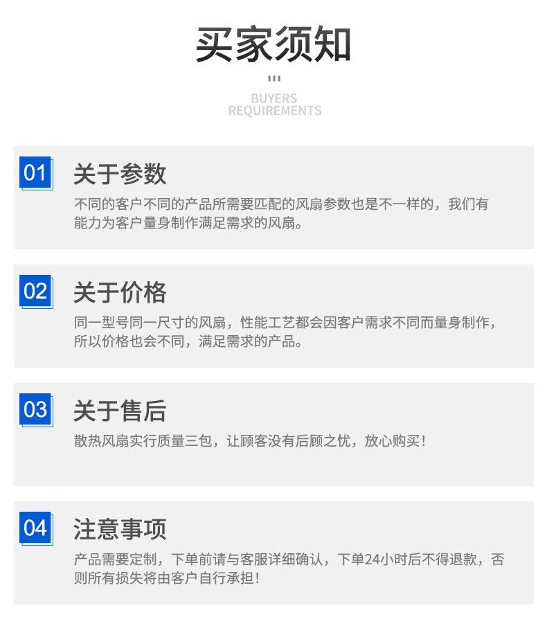 Protección de polaridad: Cuando los cables positivo y negativo se enchufan al revés, el ventilador no se alimentará (esta función no se añade a menos que se especifique lo contrario)