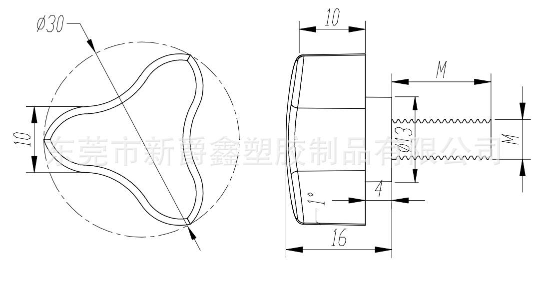 30#1/4 Manija triangular de plástico británica tornillo de manija tornillo de perilla de cabeza de goma apretado a mano fabricante