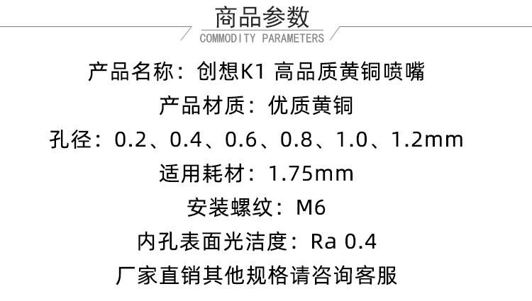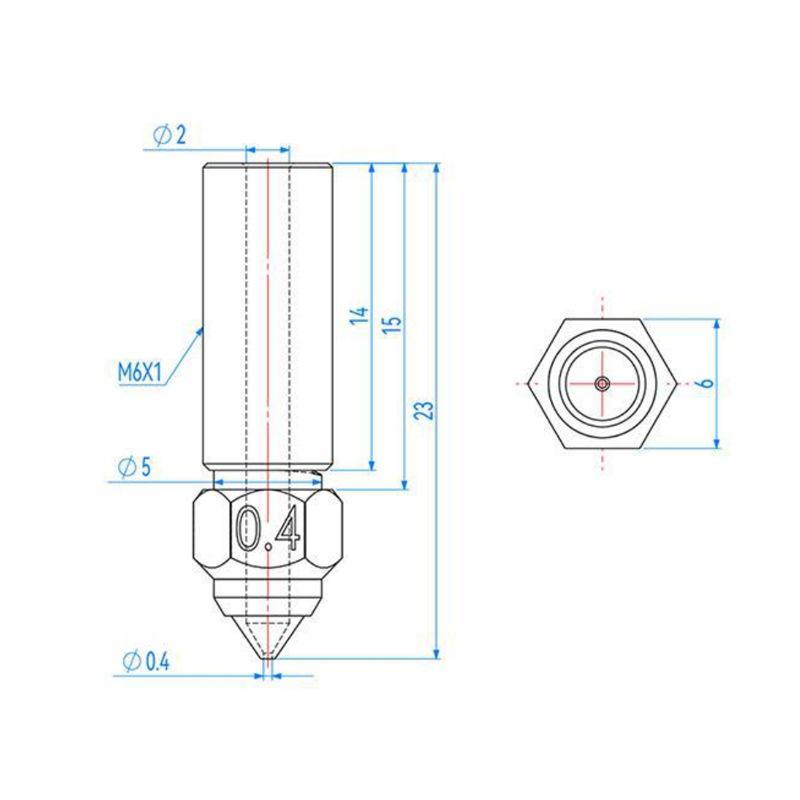 Genesis K1 brass nozzle 0.2mm, Genesis K1 brass nozzle 0.4mm, Creative K1 brass nozzle 0.6mm, Creative K1 bras...