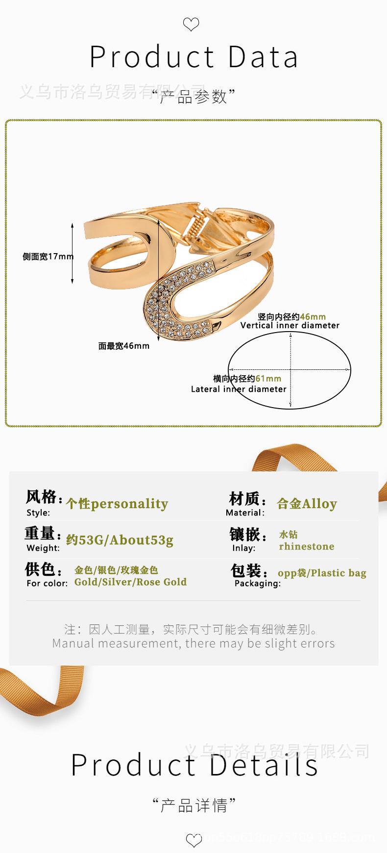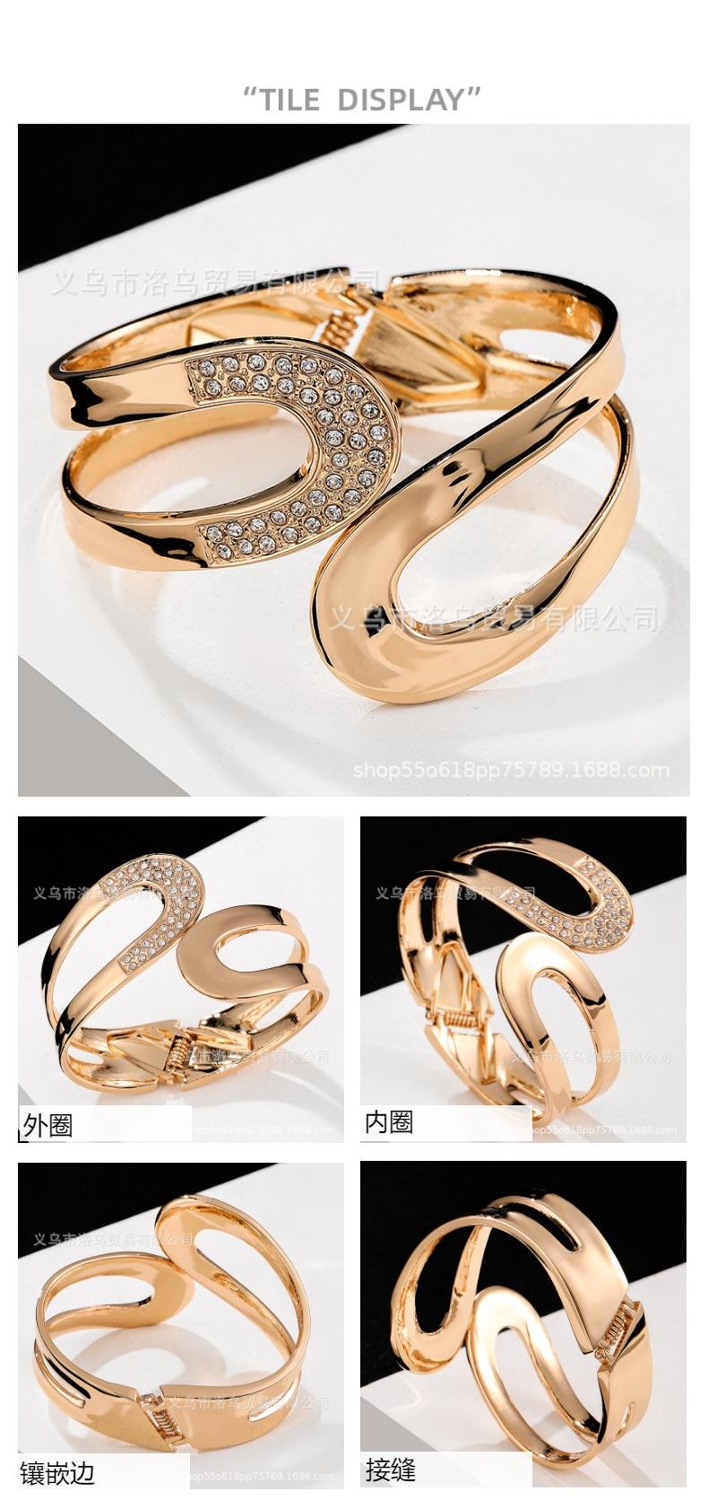 Pulsera asimétrica de diamantes estilo europeo y americano al por mayor personalizada pulsera abierta ancha foto callejera combinable Yiwu joyería de ferretería