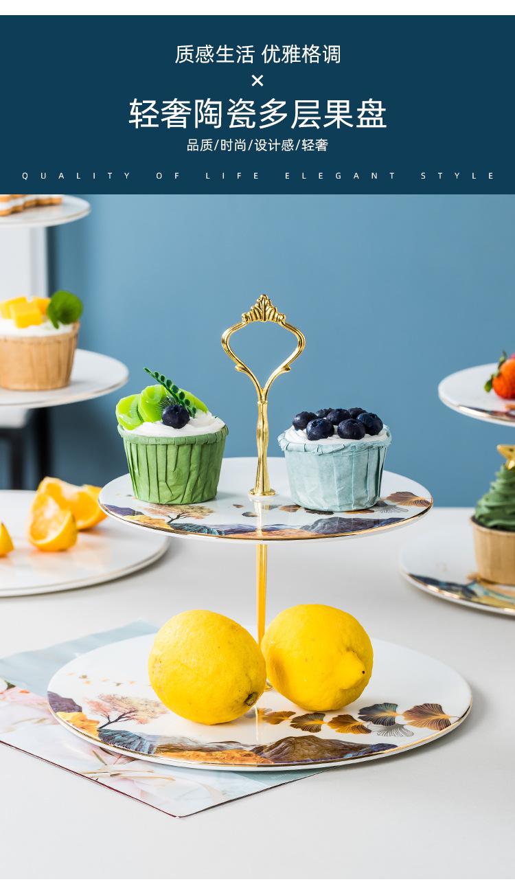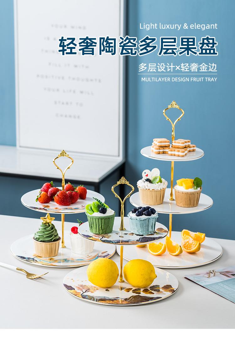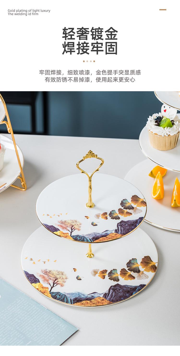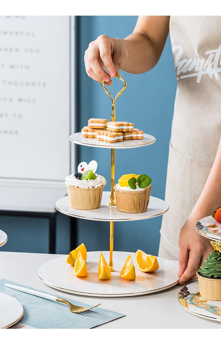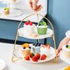 Plato nórdico de cerámica de lujo pintado en dorado para postres, frutas secas, bandeja de cuerda multicapa para sala de estar y hogar