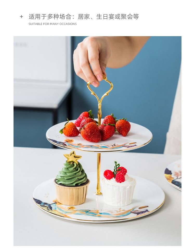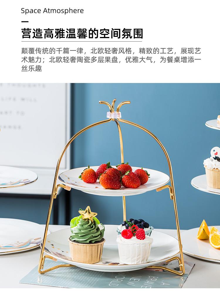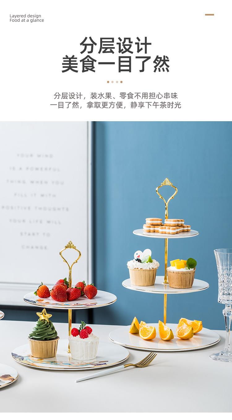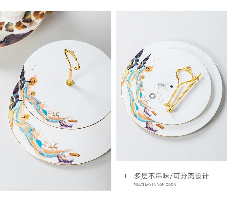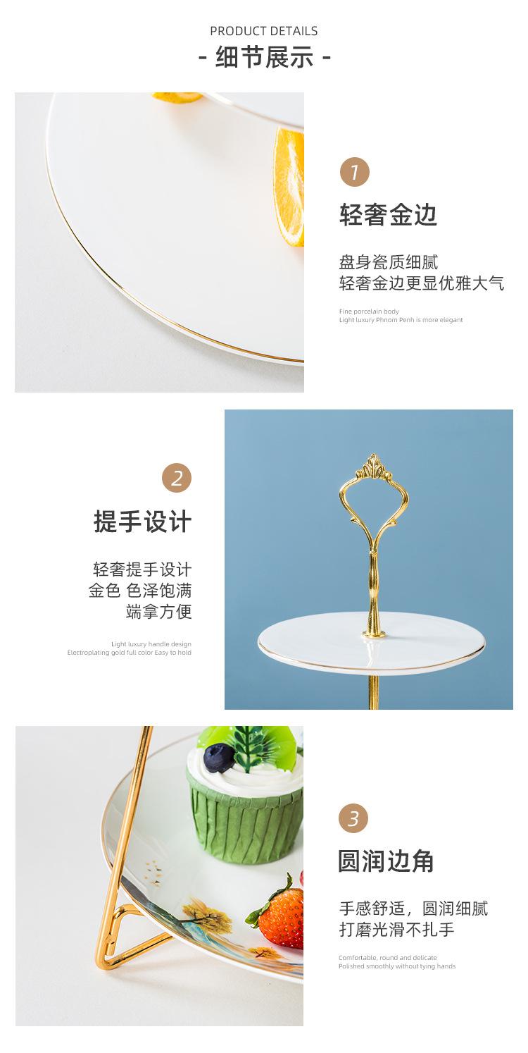 Plato nórdico de cerámica de lujo pintado en dorado para postres, frutas secas, bandeja de cuerda multicapa para sala de estar y hogar
