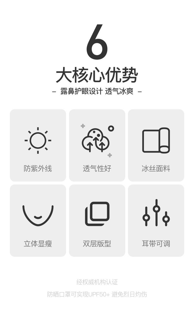 Mascarilla de verano con protección solar para los ojos, para hombres y mujeres, antiultravioleta, a prueba de polvo, transpirable, de seda helada, para colgar en las orejas.