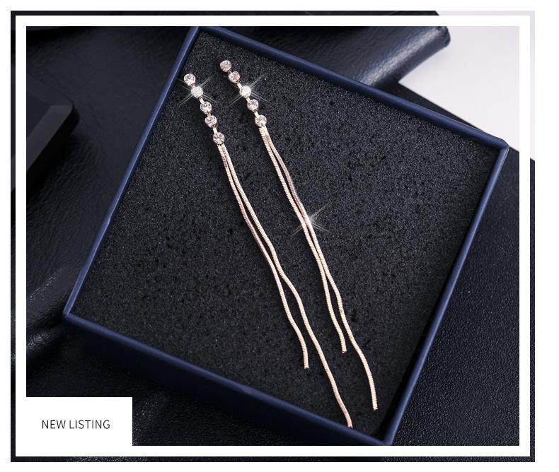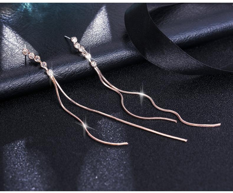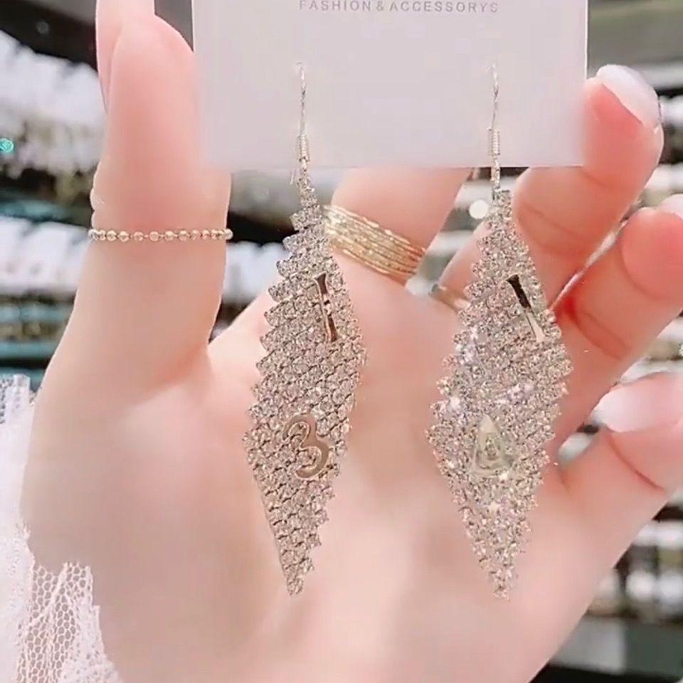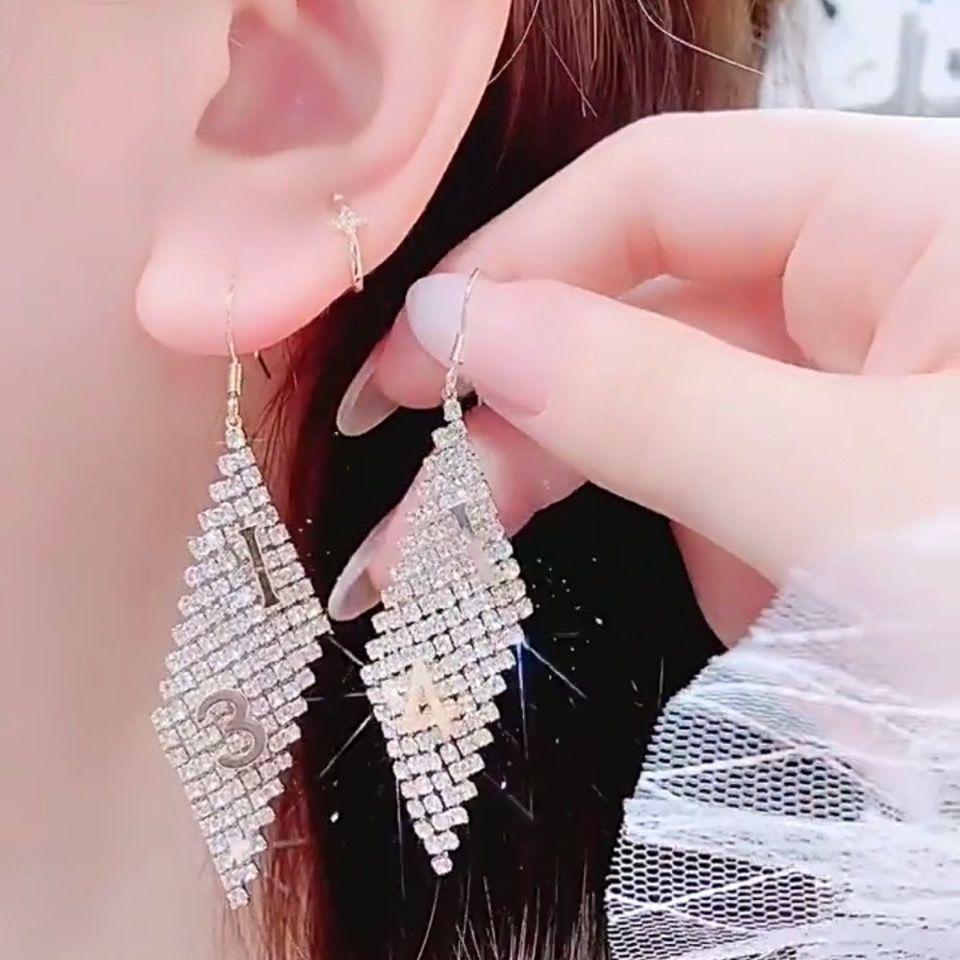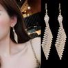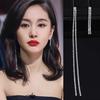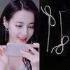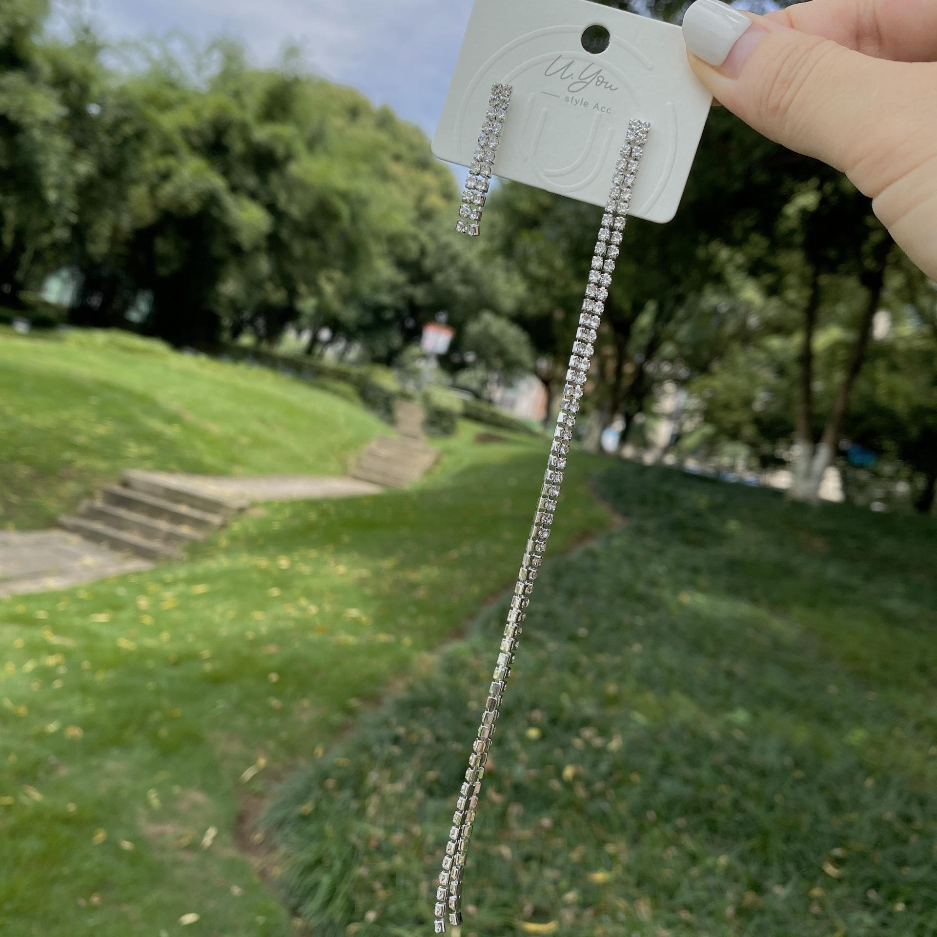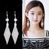Pendientes de borlas largas exageradas de moda de Corea del Sur, pendientes de gancho con diamantes distintivos para mujer, elegantes pendientes combinables de celebridades de Internet para mujer.