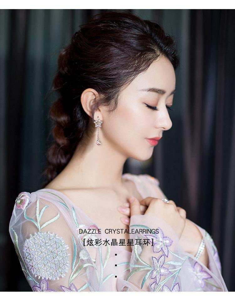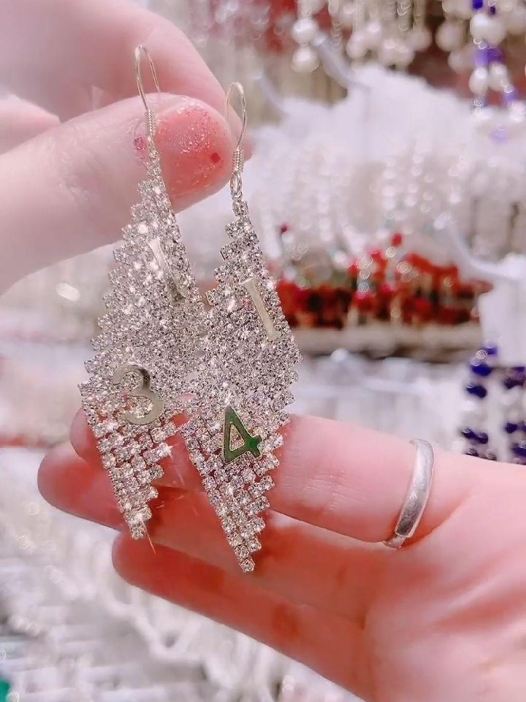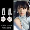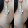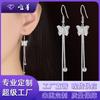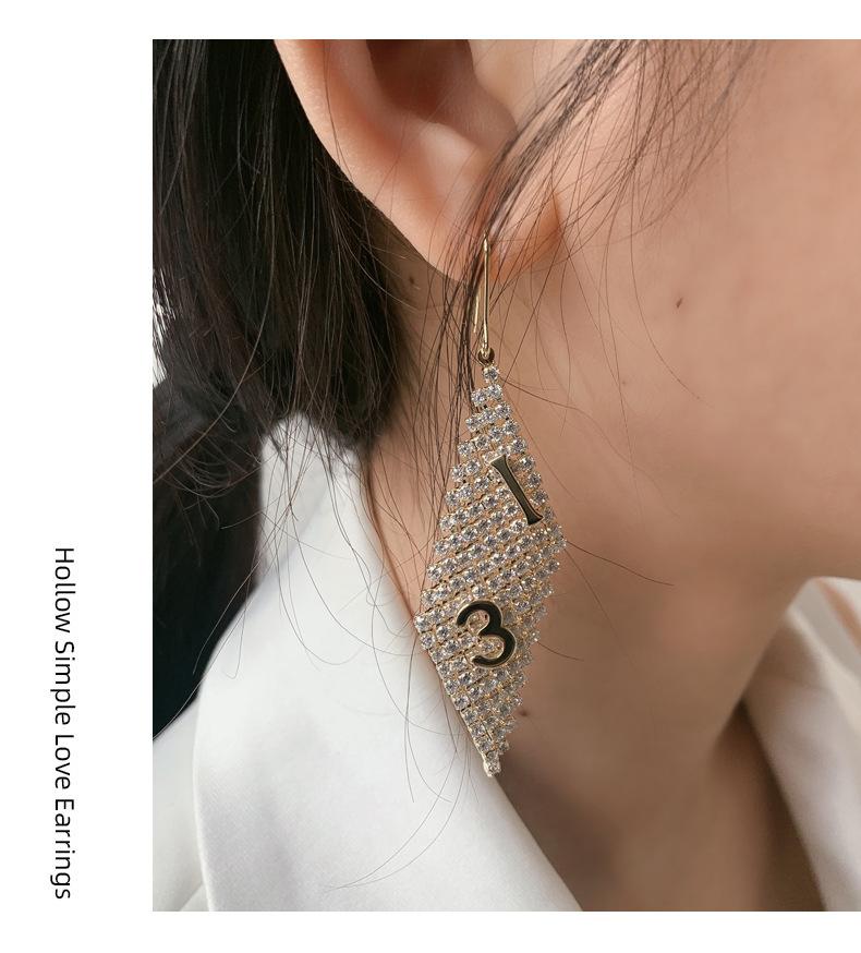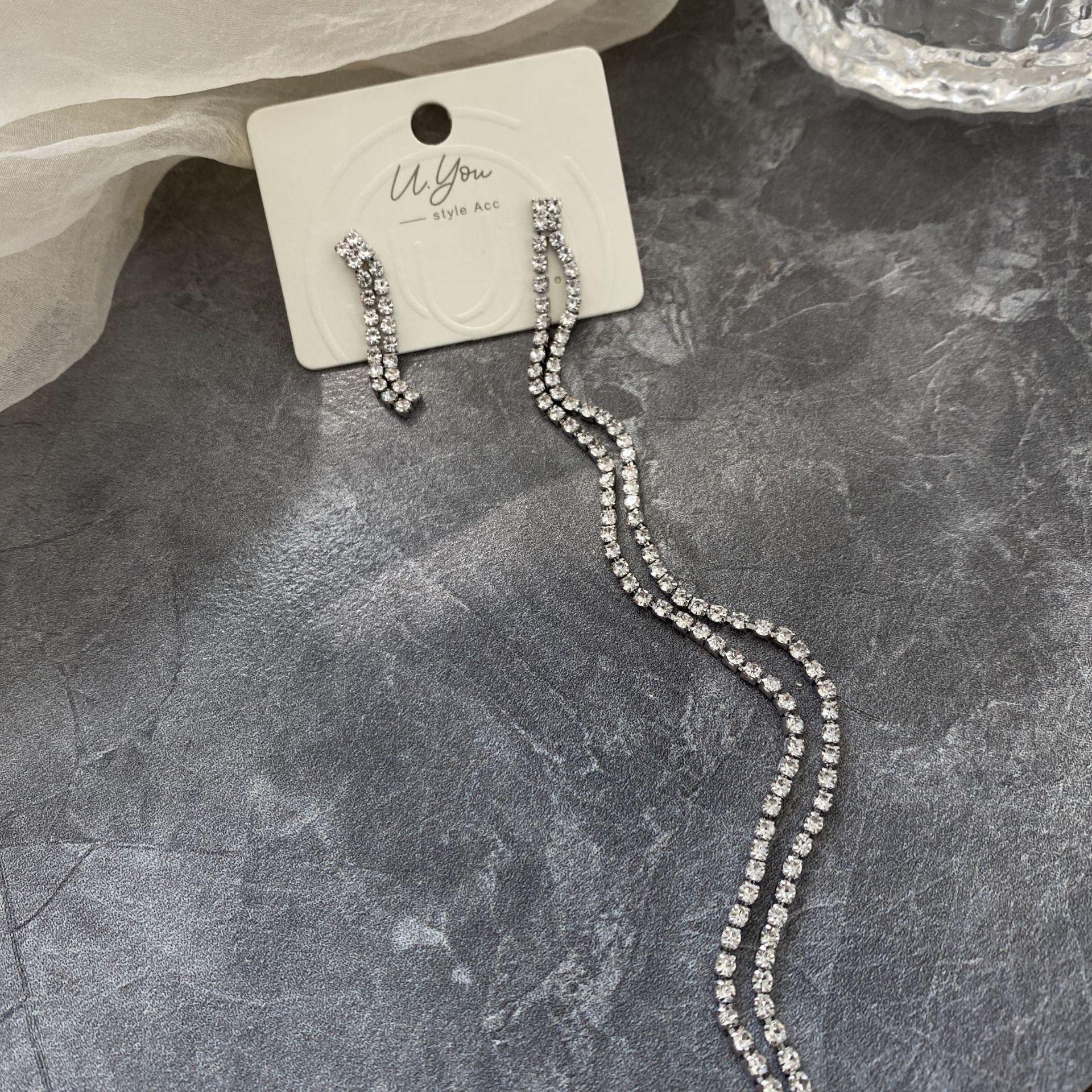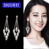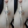 Pendientes de borlas largas exageradas de moda de Corea del Sur, pendientes de gancho con diamantes distintivos para mujer, elegantes pendientes combinables de celebridades de Internet para mujer.