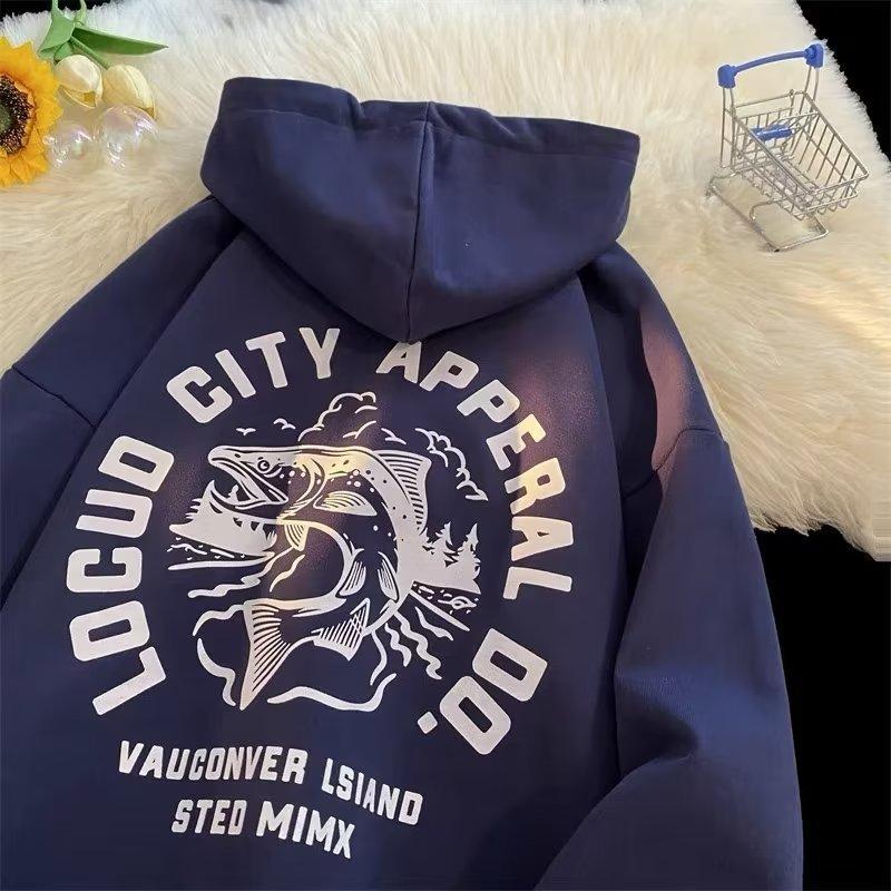 Suéter con capucha retro americano para hombre, primavera y otoño, nuevo, suelto, de talla grande, marca de moda, suéter de alta calidad