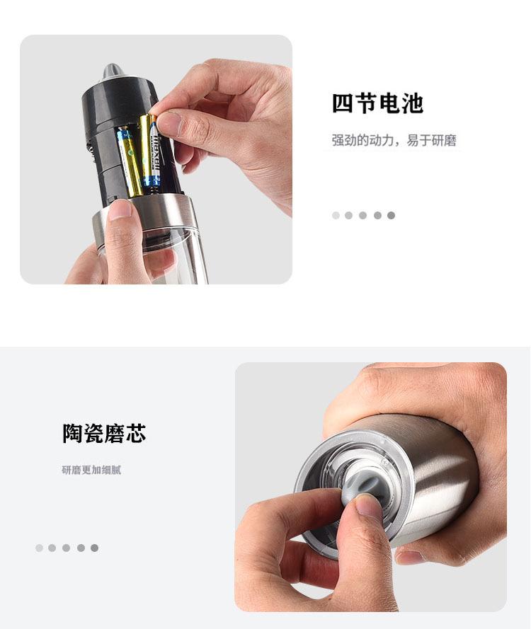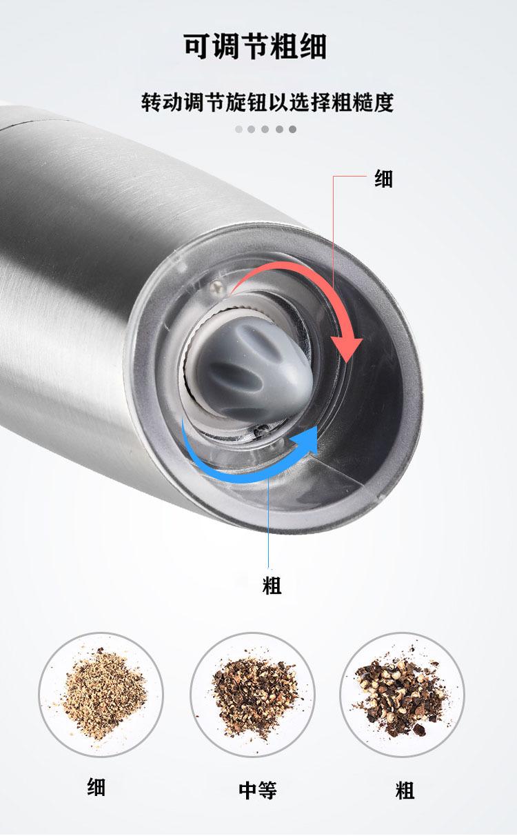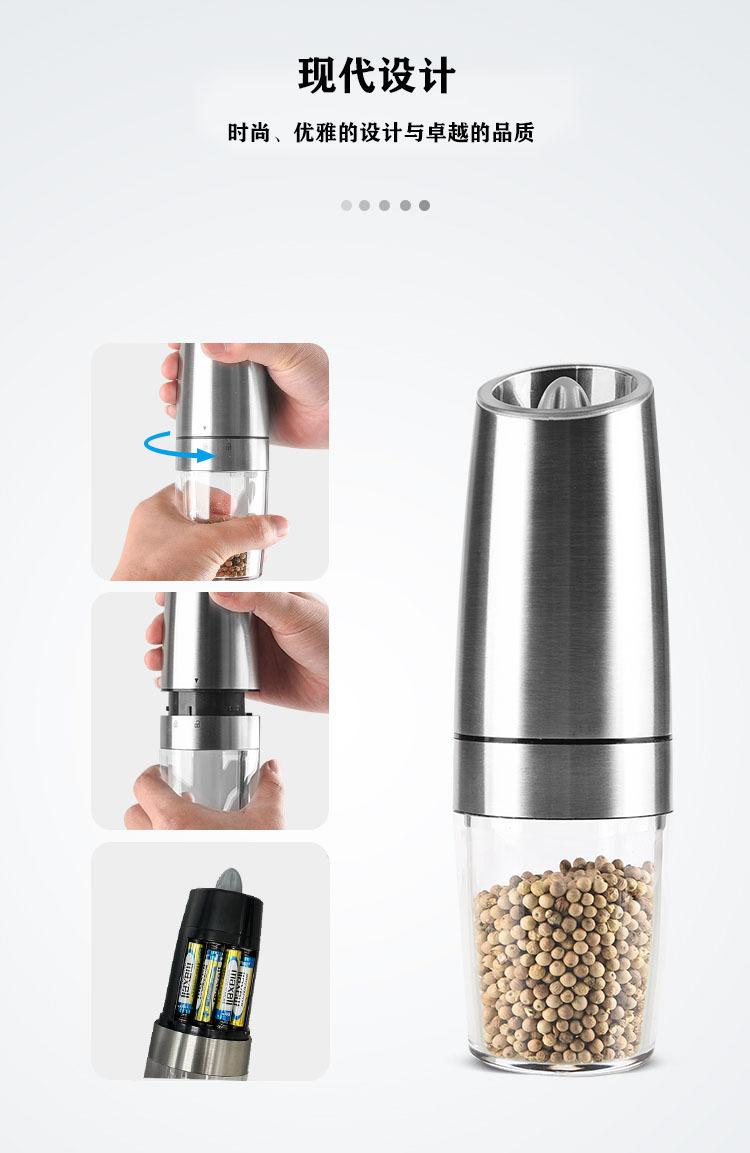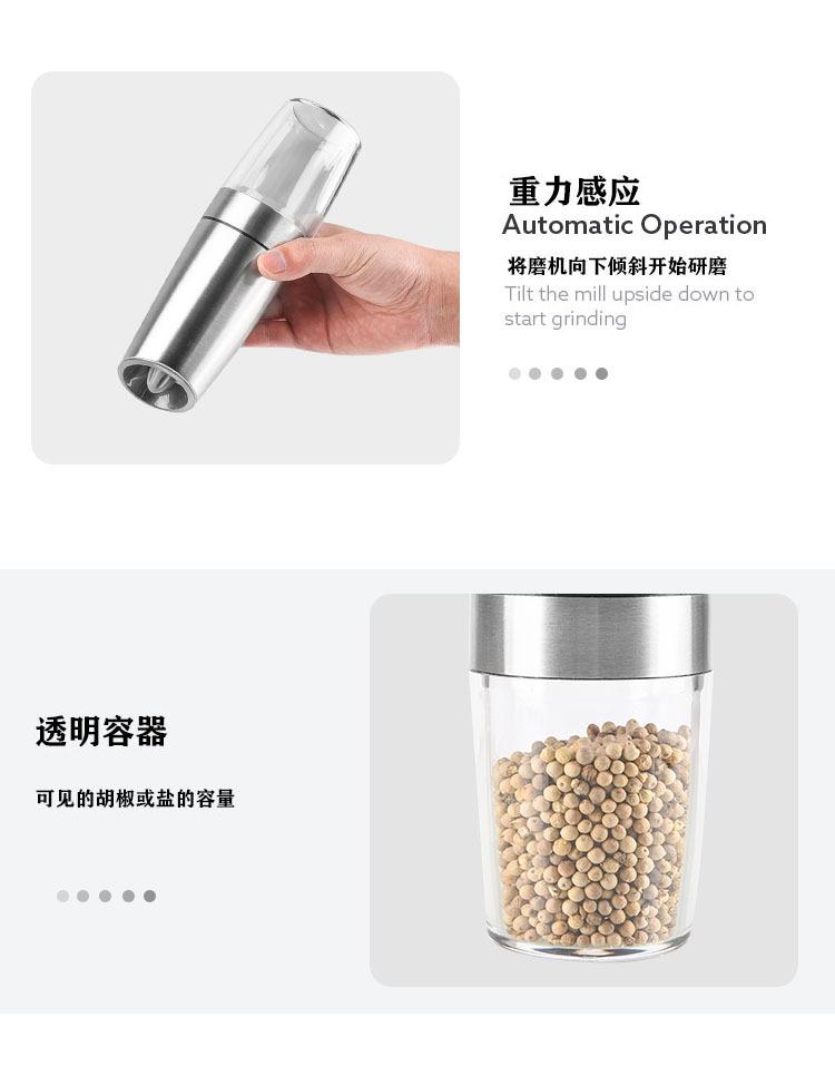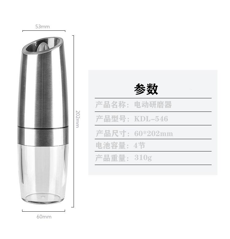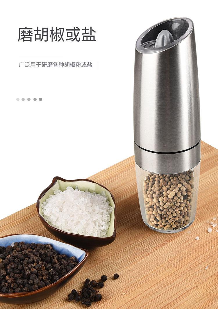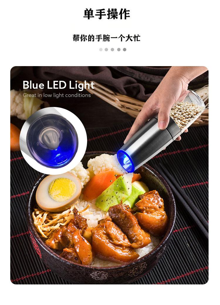 Molinillo de pimienta de inducción por gravedad de luz azul de acero inoxidable, eléctrico, sal marina, pimienta negra, polvo para moler, botella de condimento, venta al por mayor