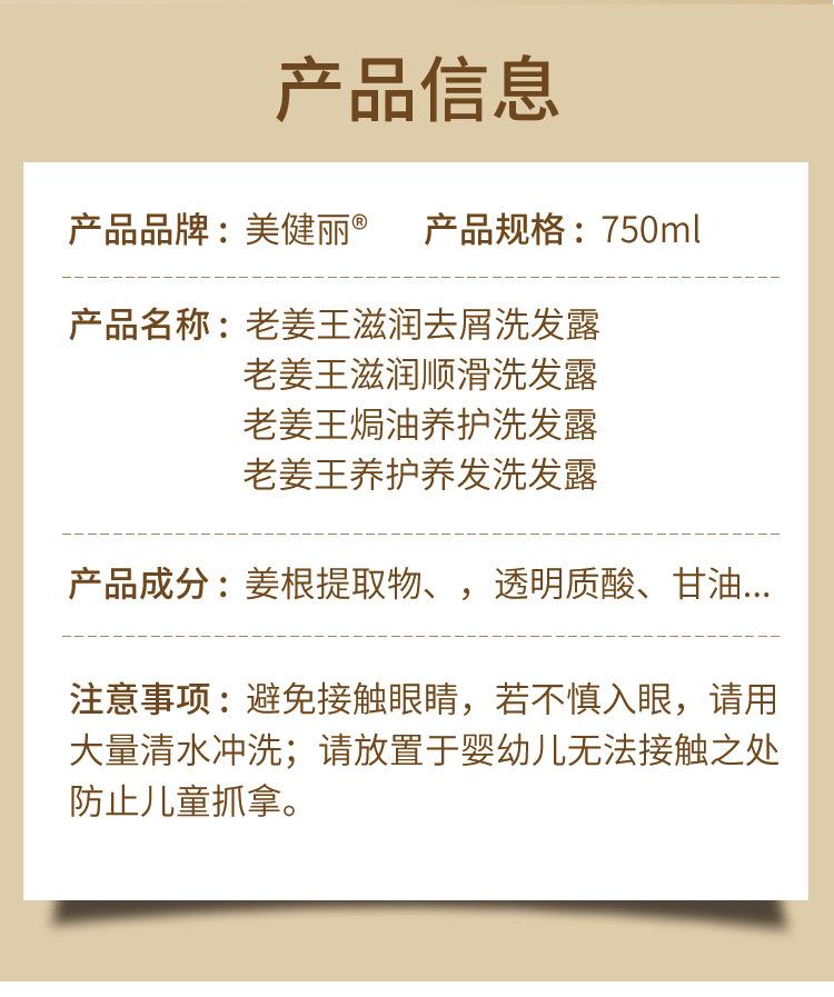 Old Jiang Wang Moisturizing Anti-dandruff Shampoo 750ml Normal Specifications