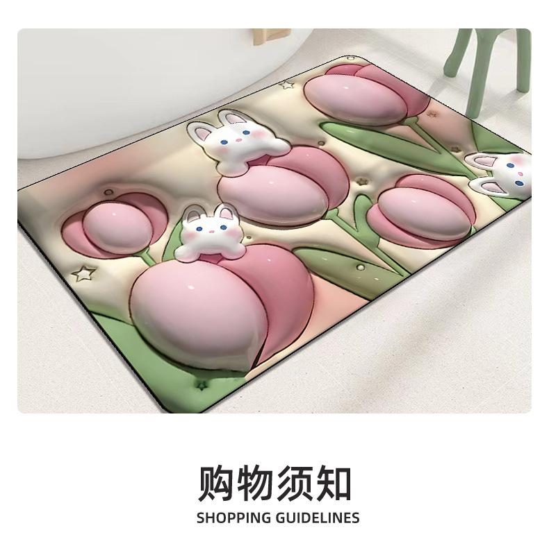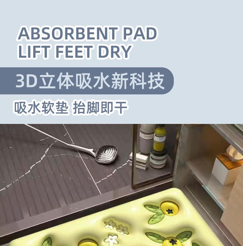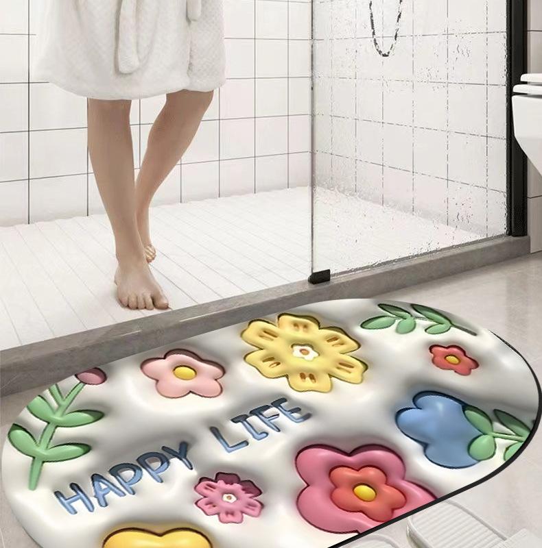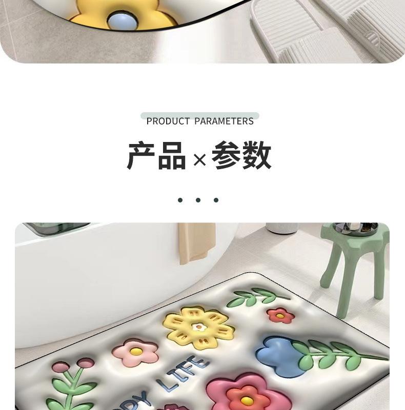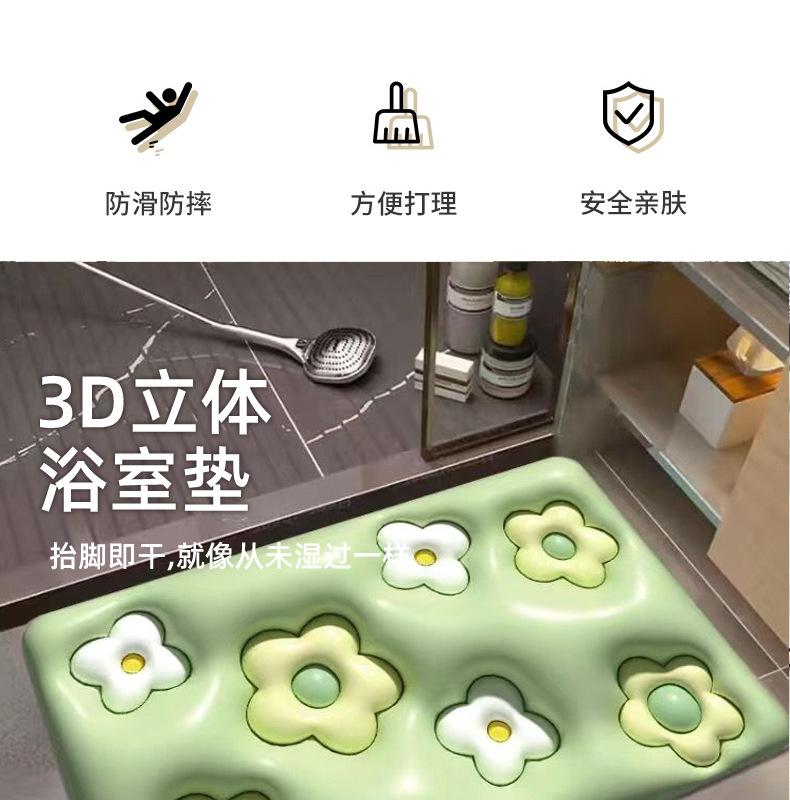 Alfombrilla de baño con expansión 3D Ins Wind, antideslizante, de diatomeas, suave, absorbente, de secado rápido, con ventosa.