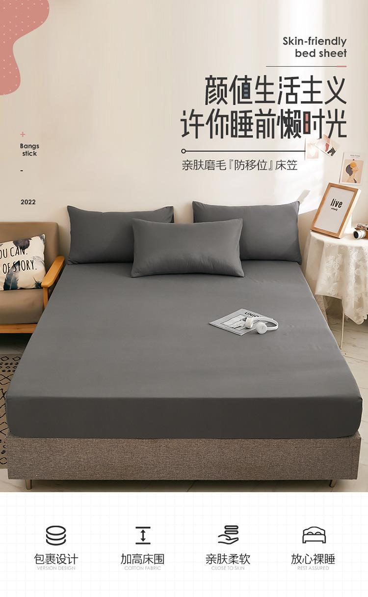 Funda de cama estampada de color sólido, funda de cama individual doble, funda de cama, sábana lijada, funda protectora, funda de cama, juego de tres piezas