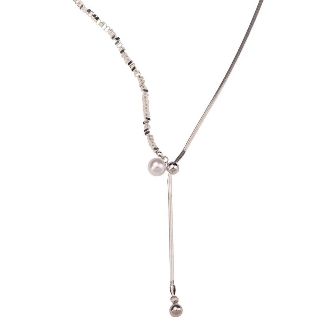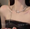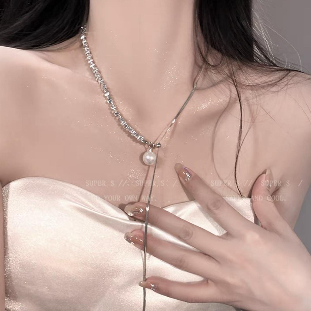 Un collar de alta gama de estilo puro y multiusos, ligero, de lujo, con diseño de nicho, cadena de clavícula, collar de perlas de plata rotas, cadena para el cuello