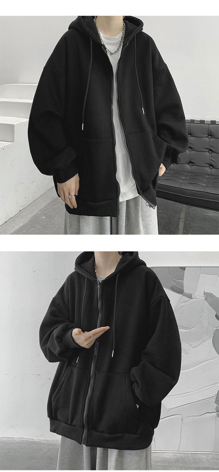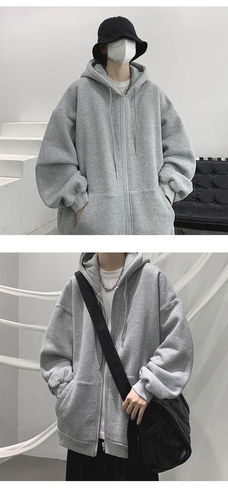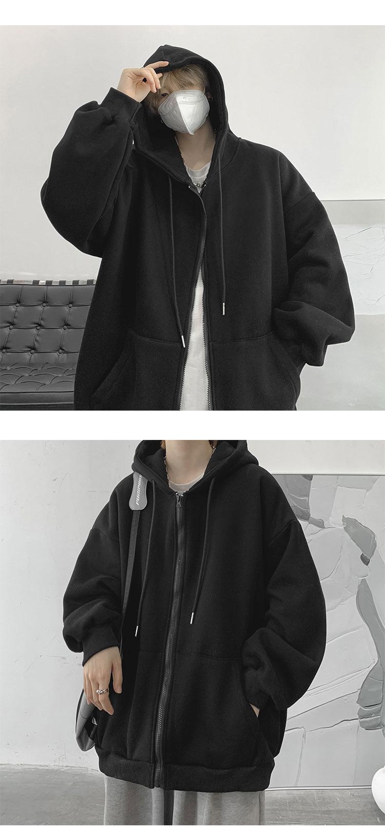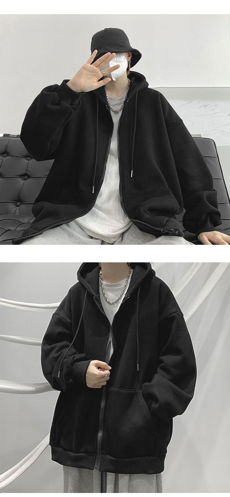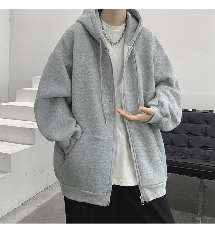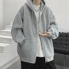 Suéter tipo cárdigan con cremallera para hombre, chaqueta con capucha holgada de color liso, estilo retro, combinable con todo, de marca de moda de otoño