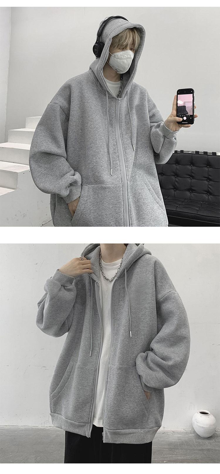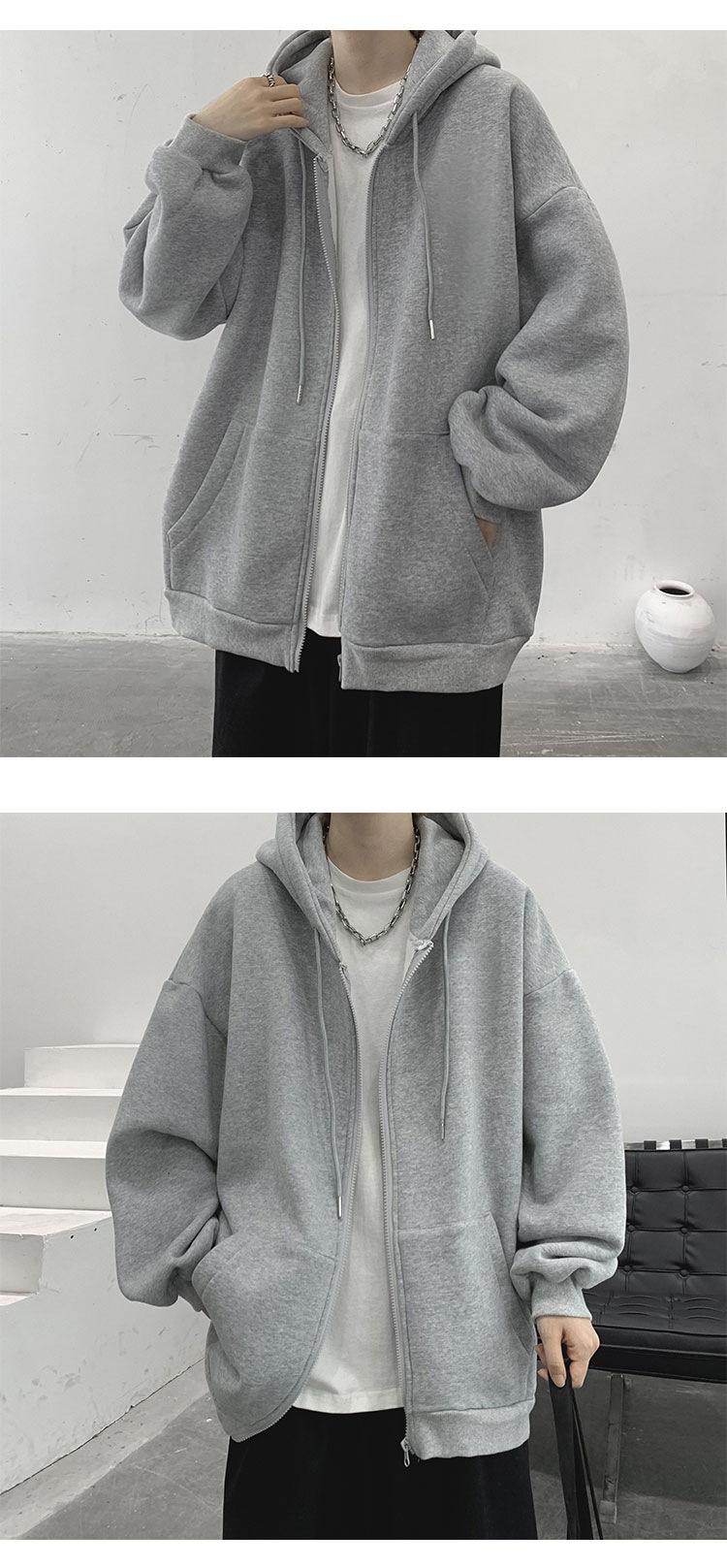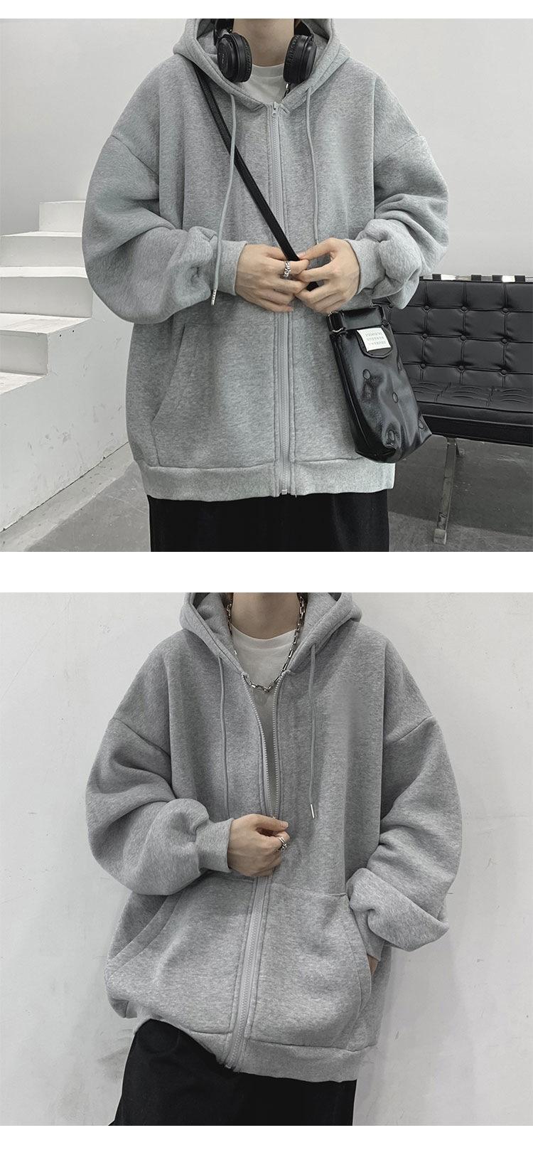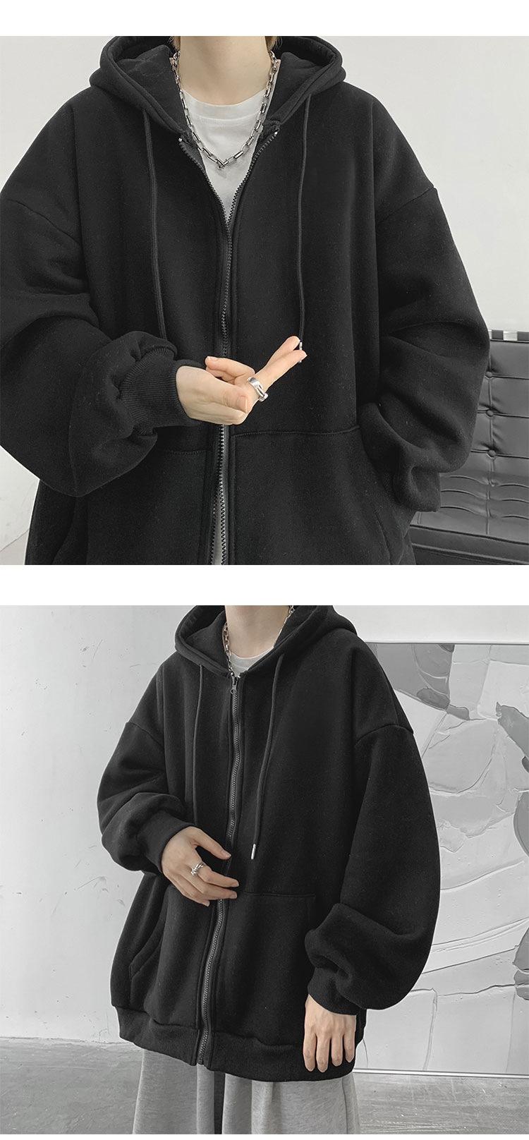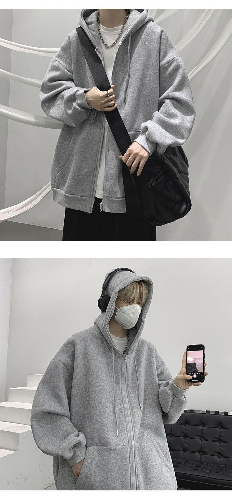 Suéter tipo cárdigan con cremallera para hombre, chaqueta con capucha holgada de color liso, estilo retro, combinable con todo, de marca de moda de otoño