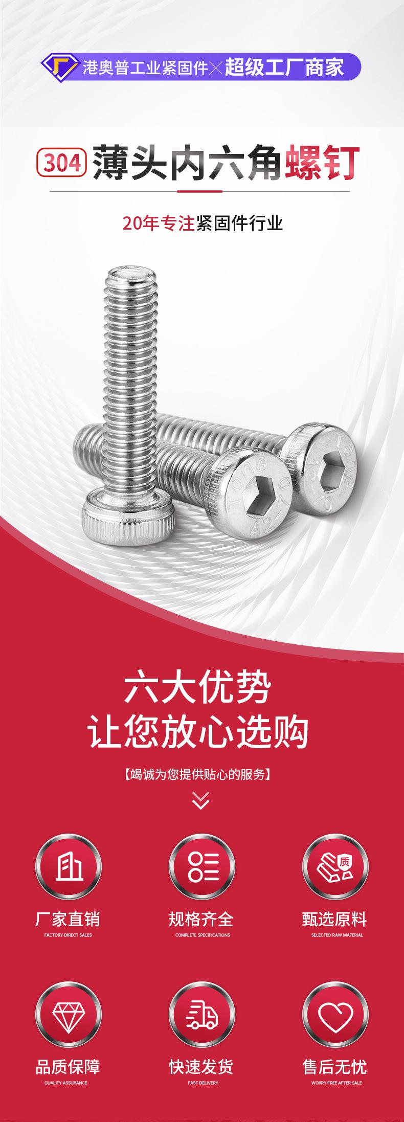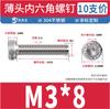 Tornillo de cabeza hexagonal de acero inoxidable 304, DIN7984, de cabeza plana y fina, M3-M12