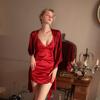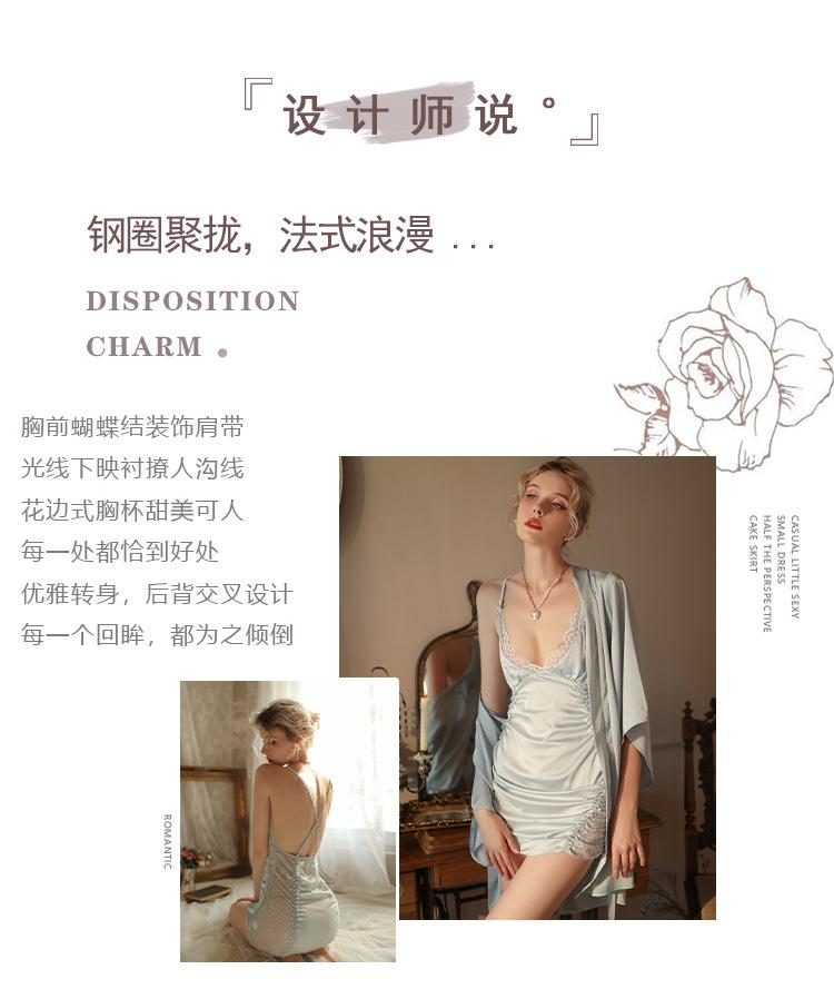 Hermoso Hilo Otoño Nuevo Sexy Camisón Camisón Conjunto de Camisón Encaje Perspectiva V Profunda Francés Tentación Pijama de Mujer