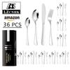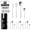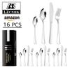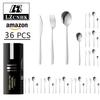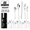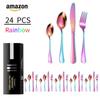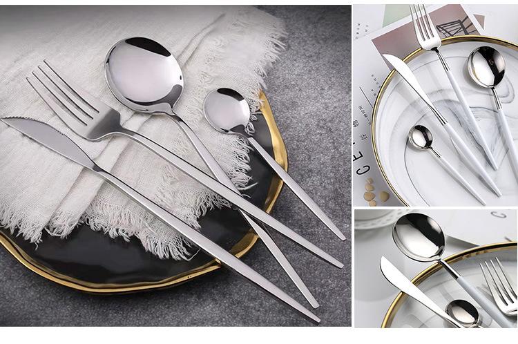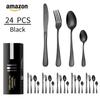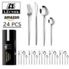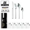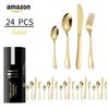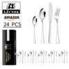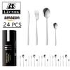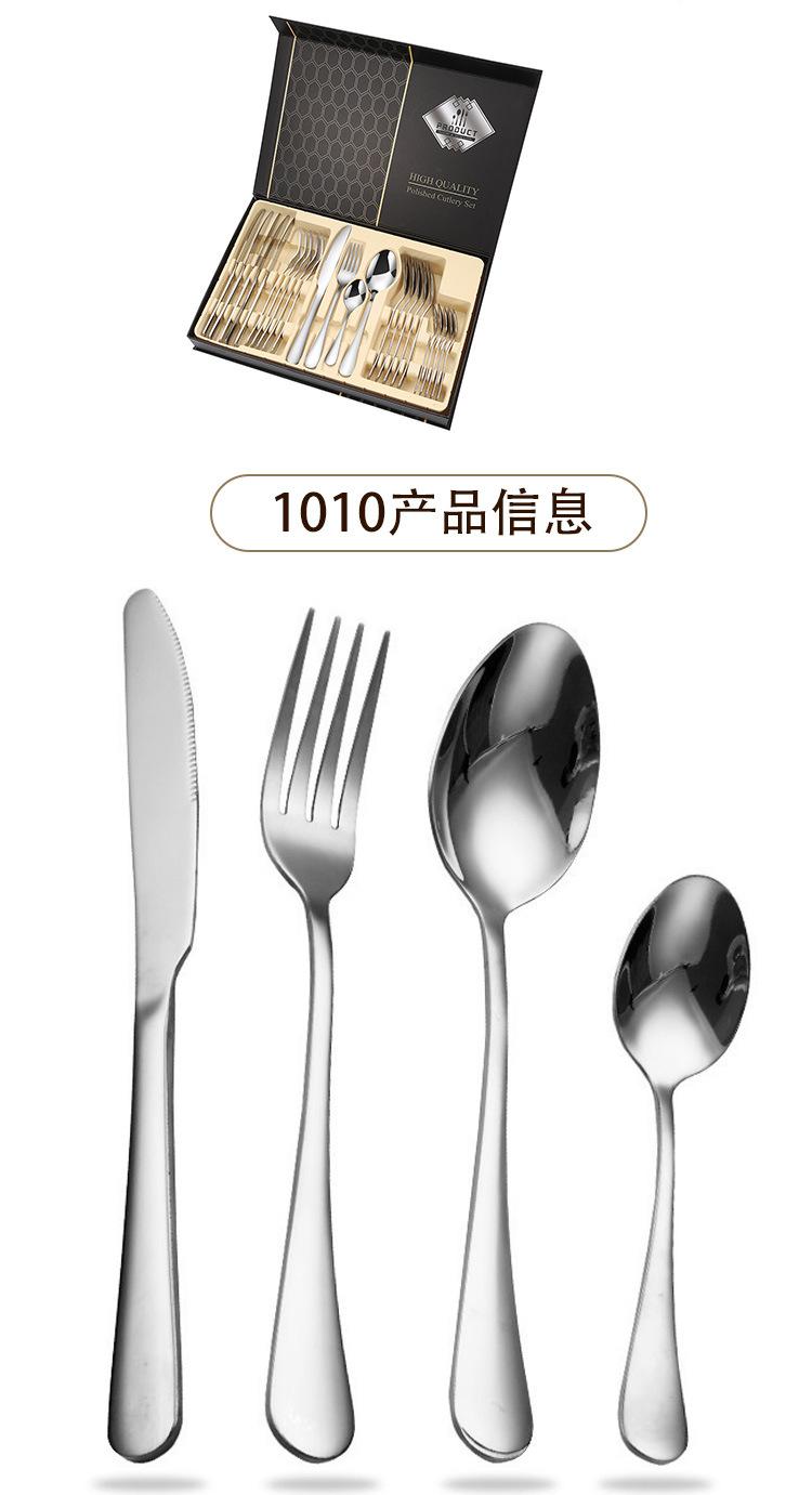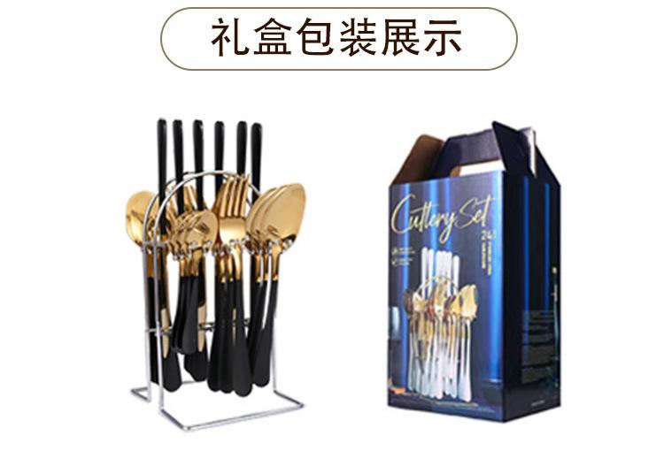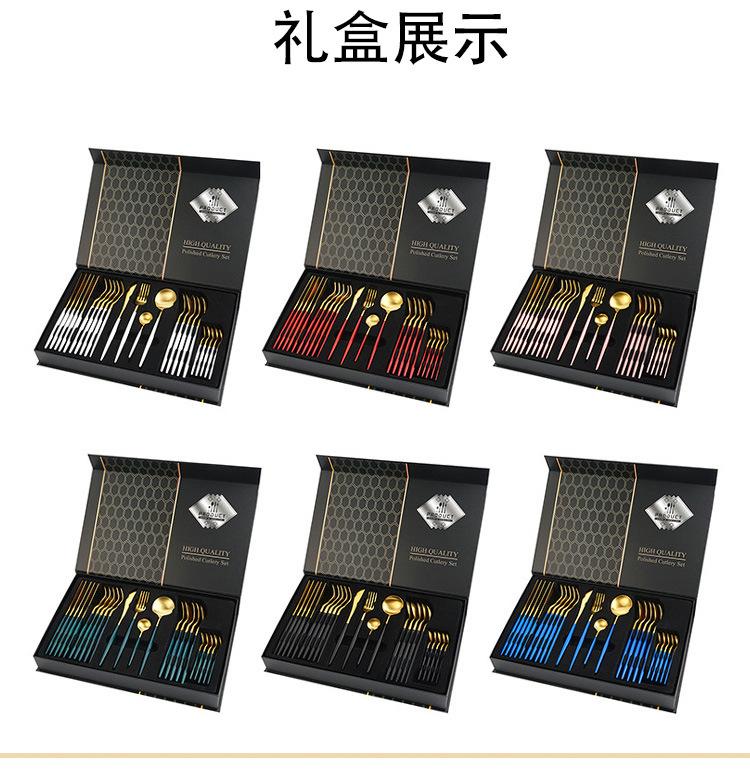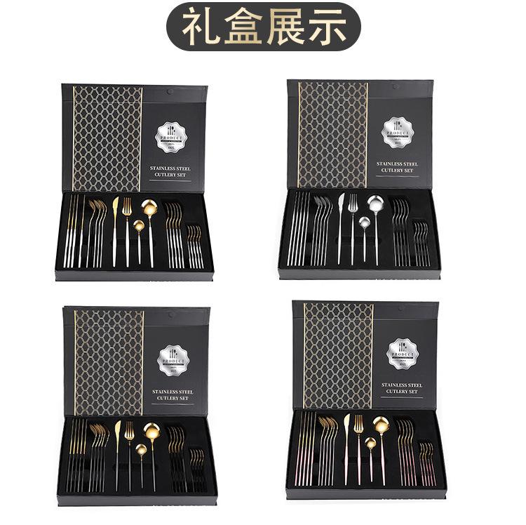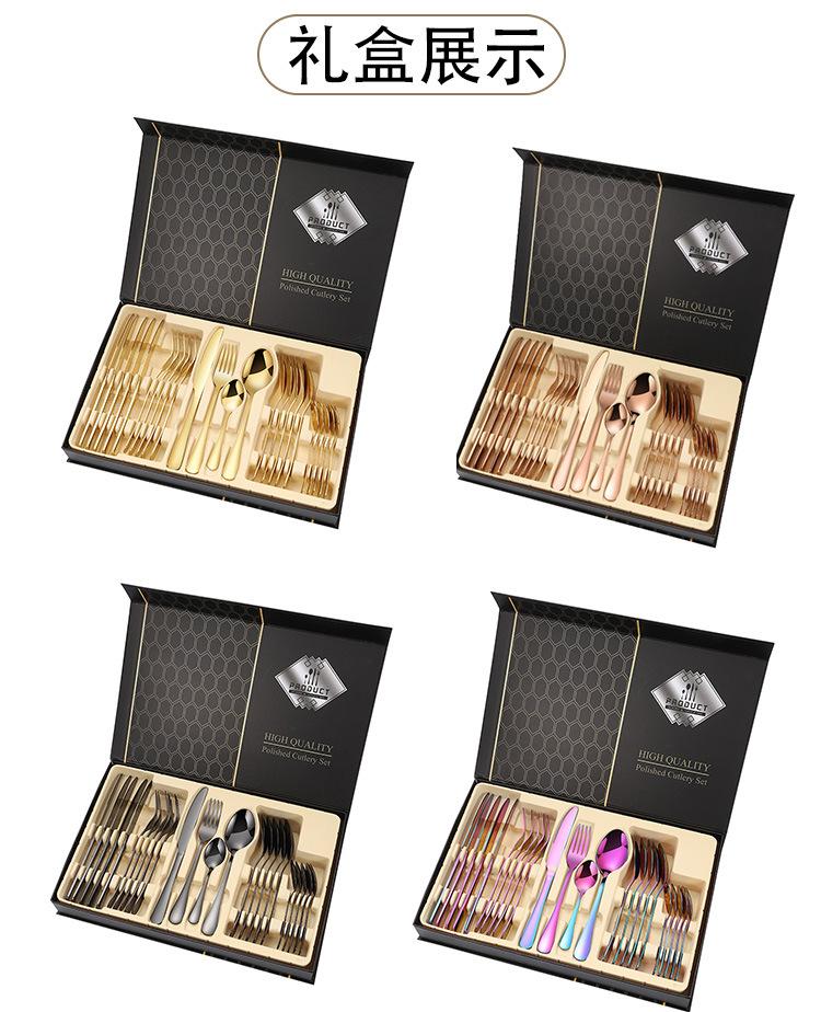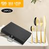Caja de Regalo de Cuchillo, Tenedor y Cuchara de Venta Caliente Transfronteriza Juego de Vajilla de Acero Inoxidable Plata Juego de 24 Piezas Cuchillo, Tenedor y Cuchara Occidentales para Bistec