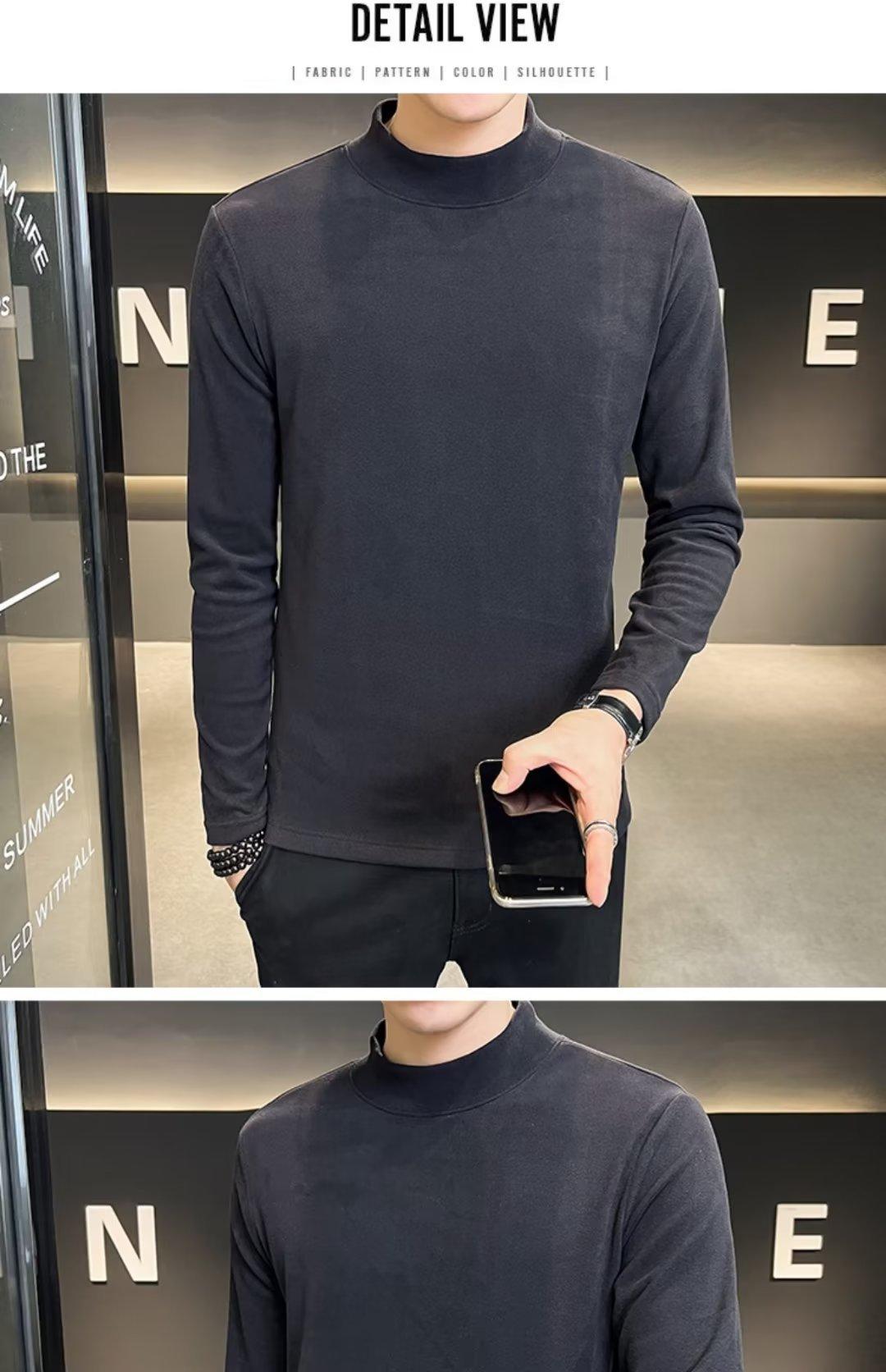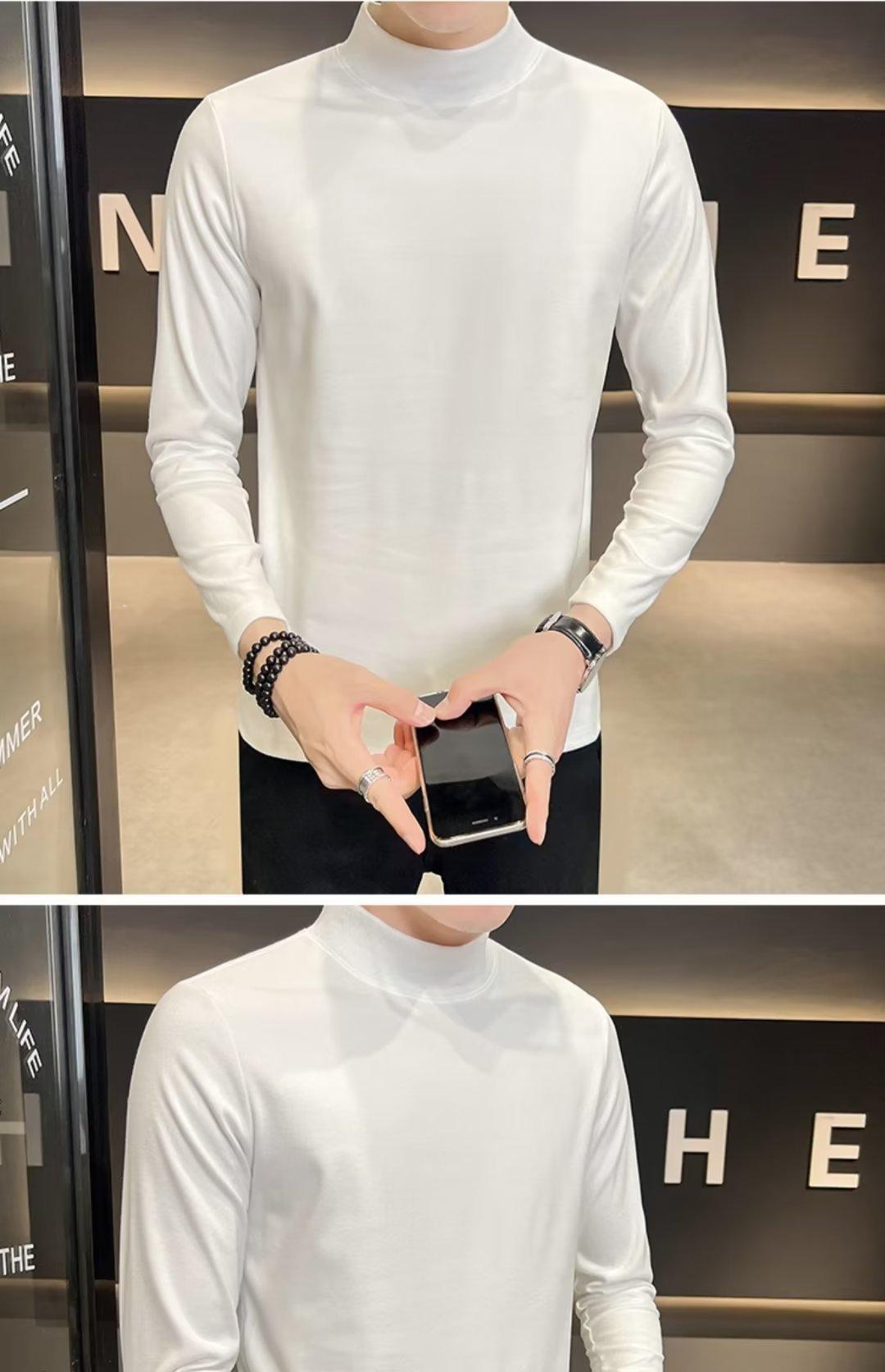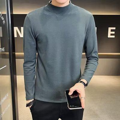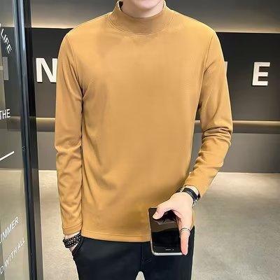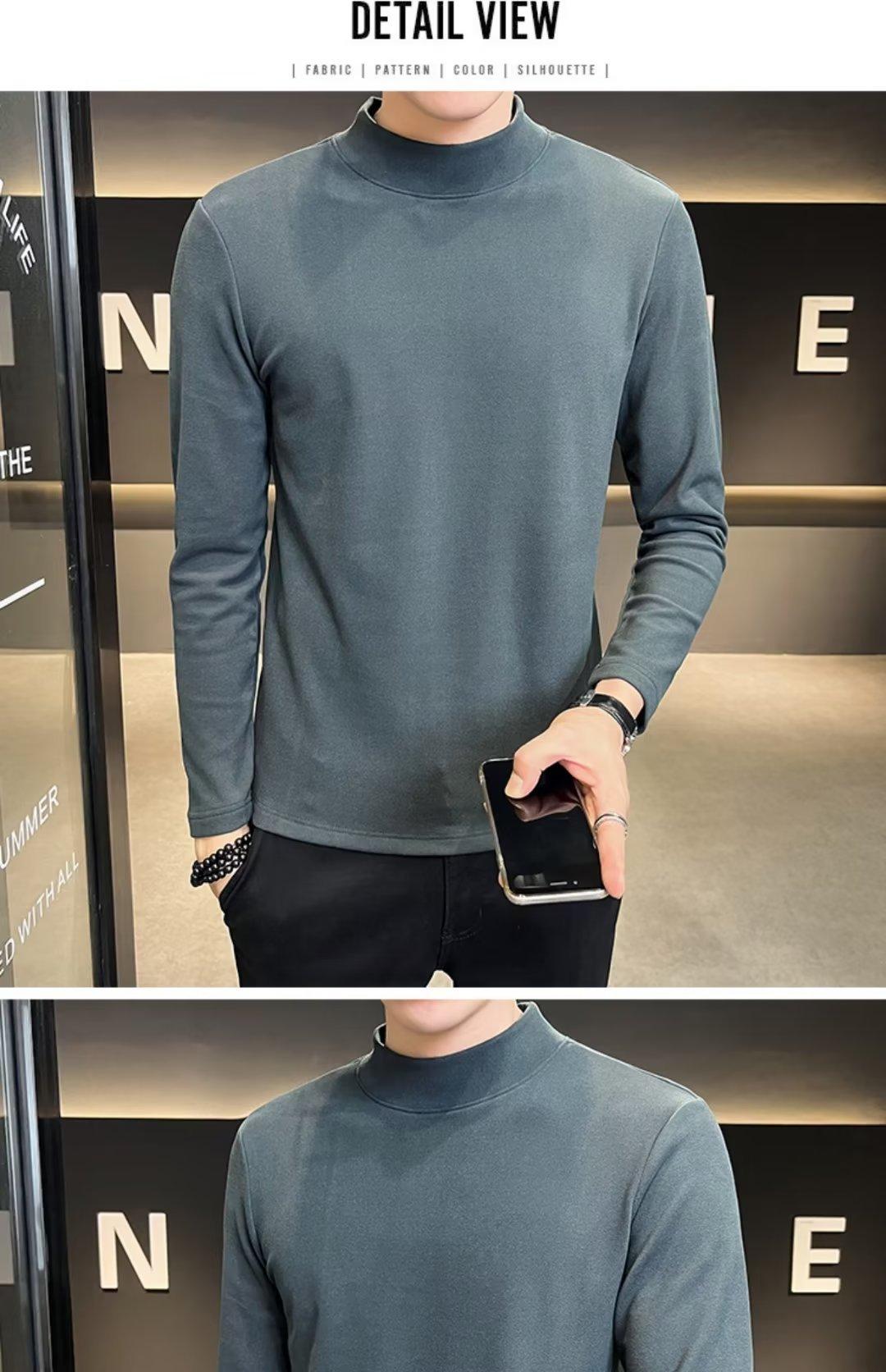 Camiseta de manga larga de otoño e invierno para hombre, camisa de cuello medio de moda, ropa interior cómoda, cuello alto medio, ropa superior cálida de terciopelo