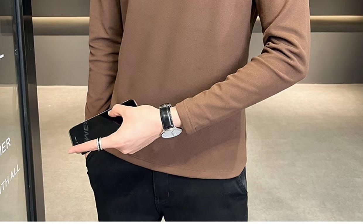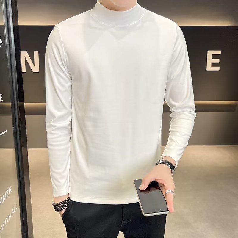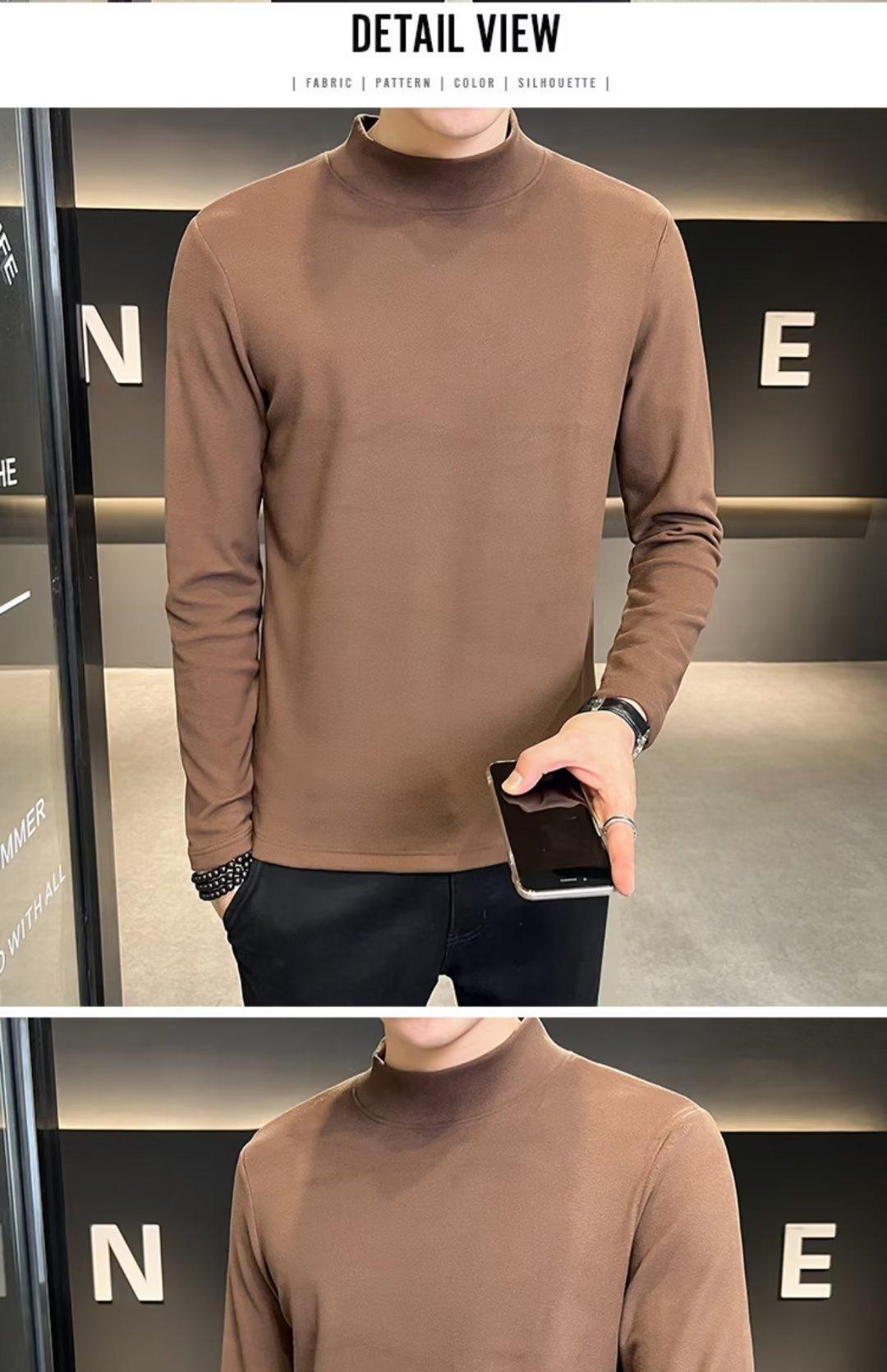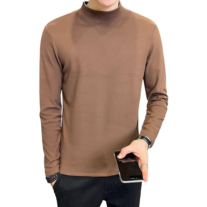Camiseta de manga larga de otoño e invierno para hombre, camisa de cuello medio de moda, ropa interior cómoda, cuello alto medio, ropa superior cálida de terciopelo
