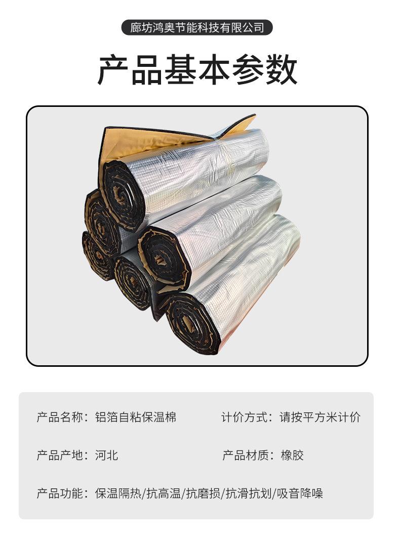 Algodón aislante de lámina de aluminio grado B1 transfronterizo autoadhesivo algodón aislante techo mayoreo goma aislante insonorización algodón de goma para reducción de ruido