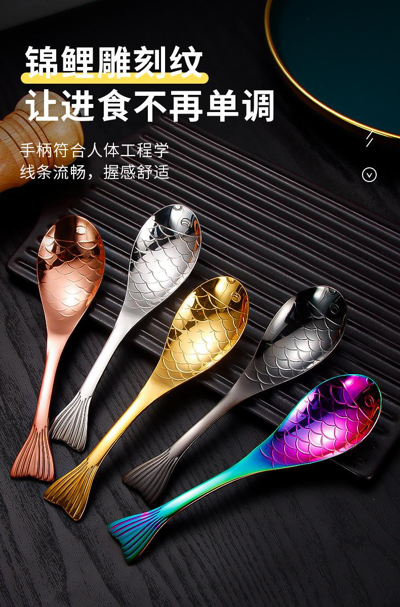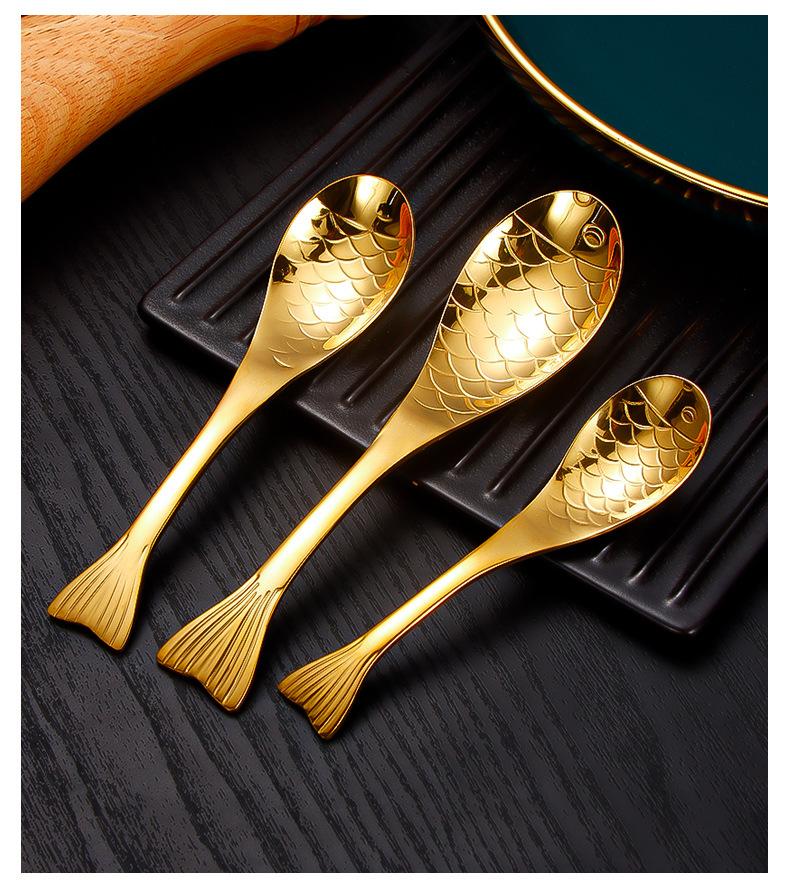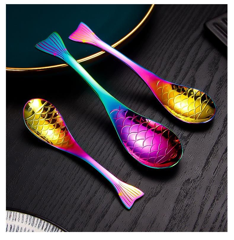 Cuchara de acero inoxidable 304, vajilla creativa, cuchara de cola de pescado, cuchara para comer para adultos, cuchara para niños, cuchara para condimentar