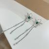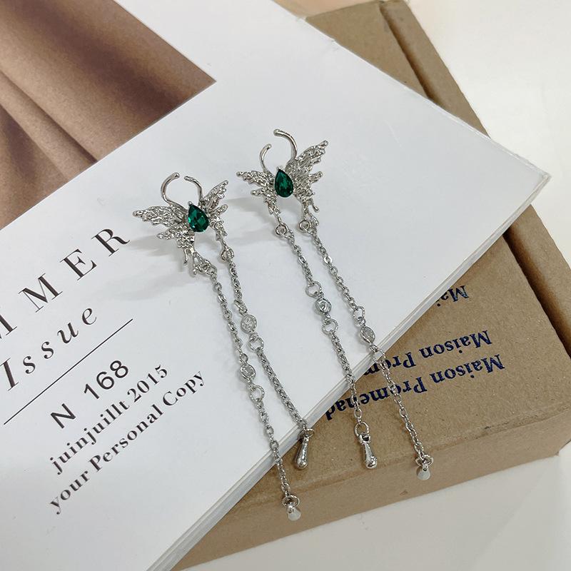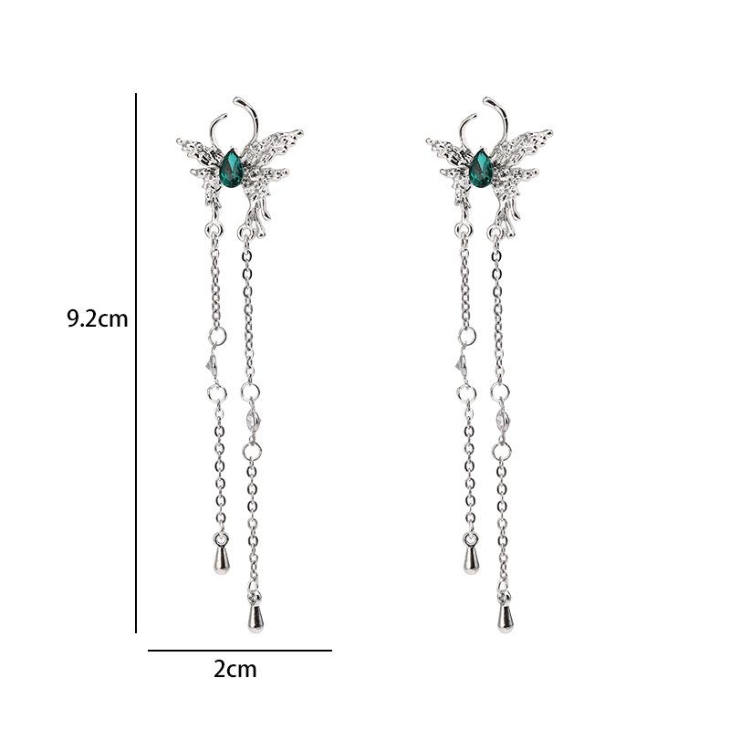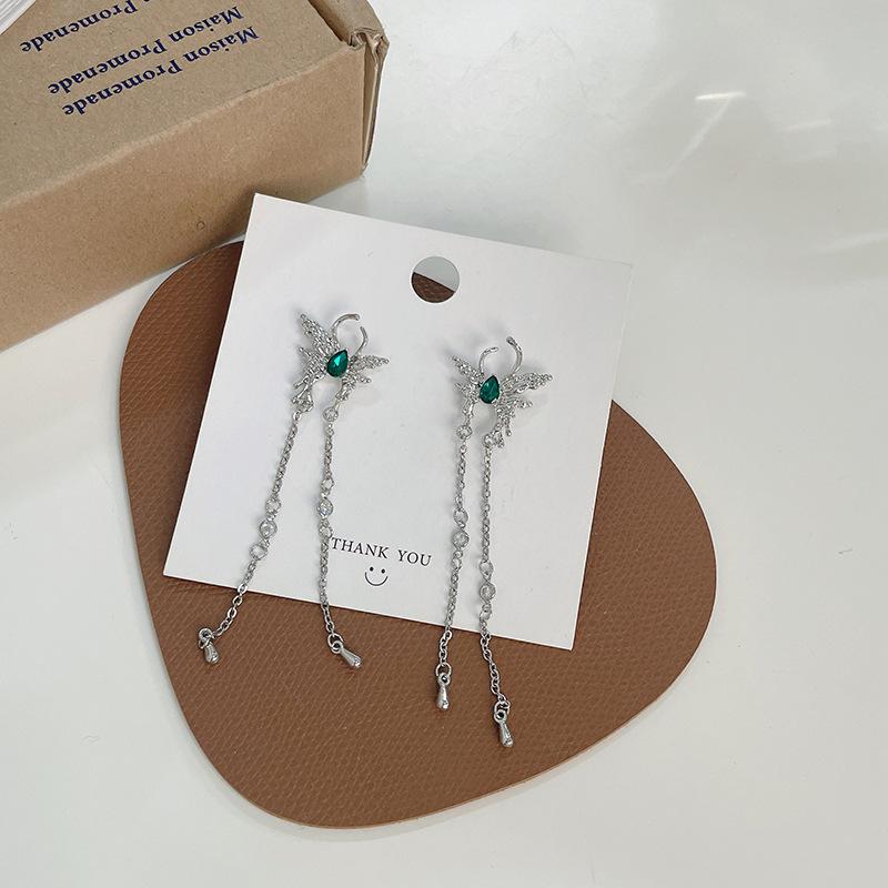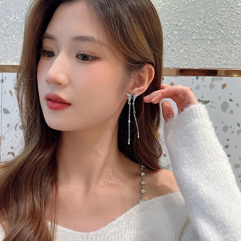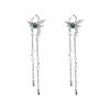Pendientes de aguja de plata S925 con borla de mariposa y circonita verde, elegantes y combinables, de lujo, B010
