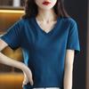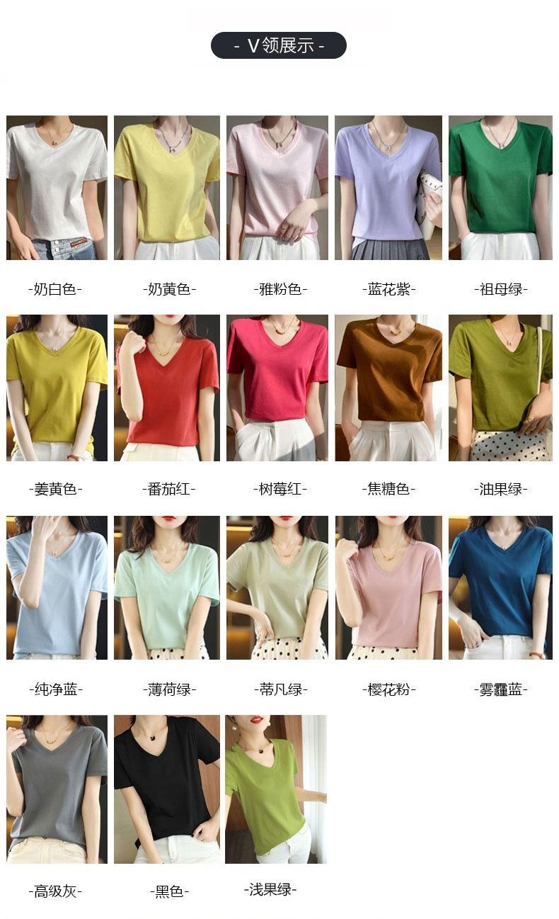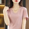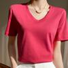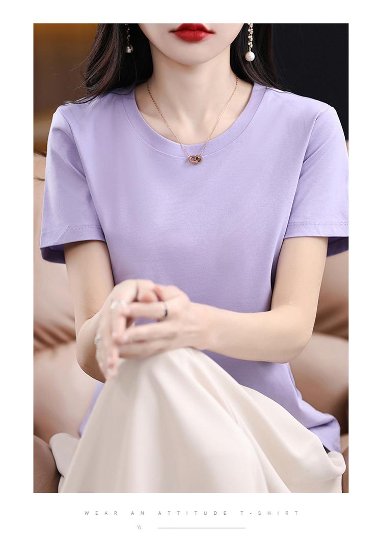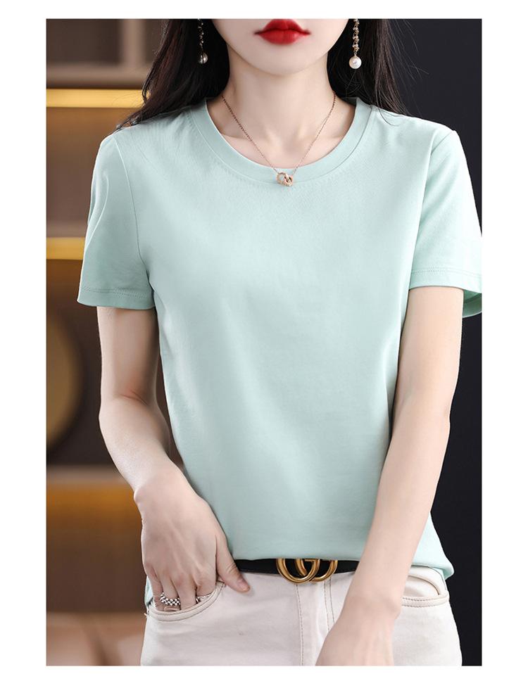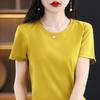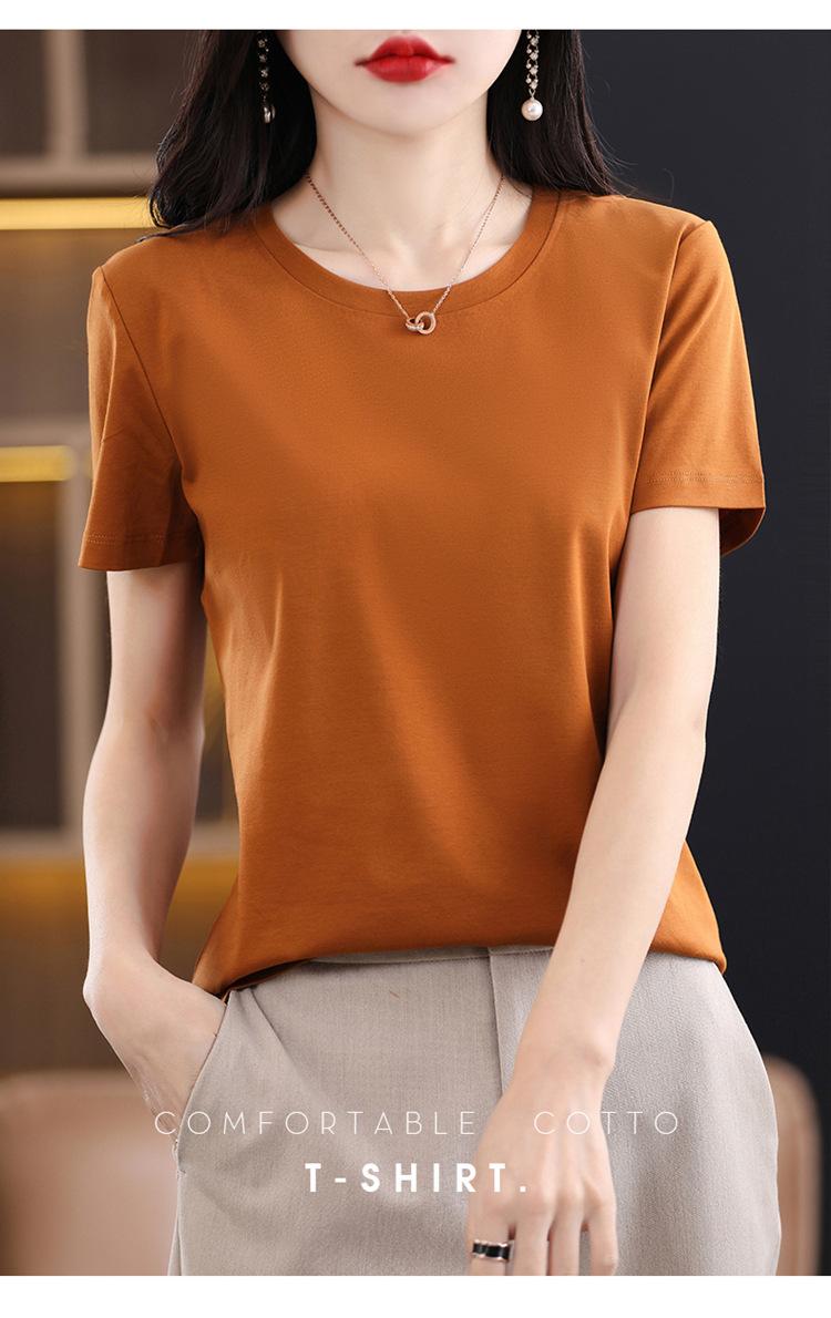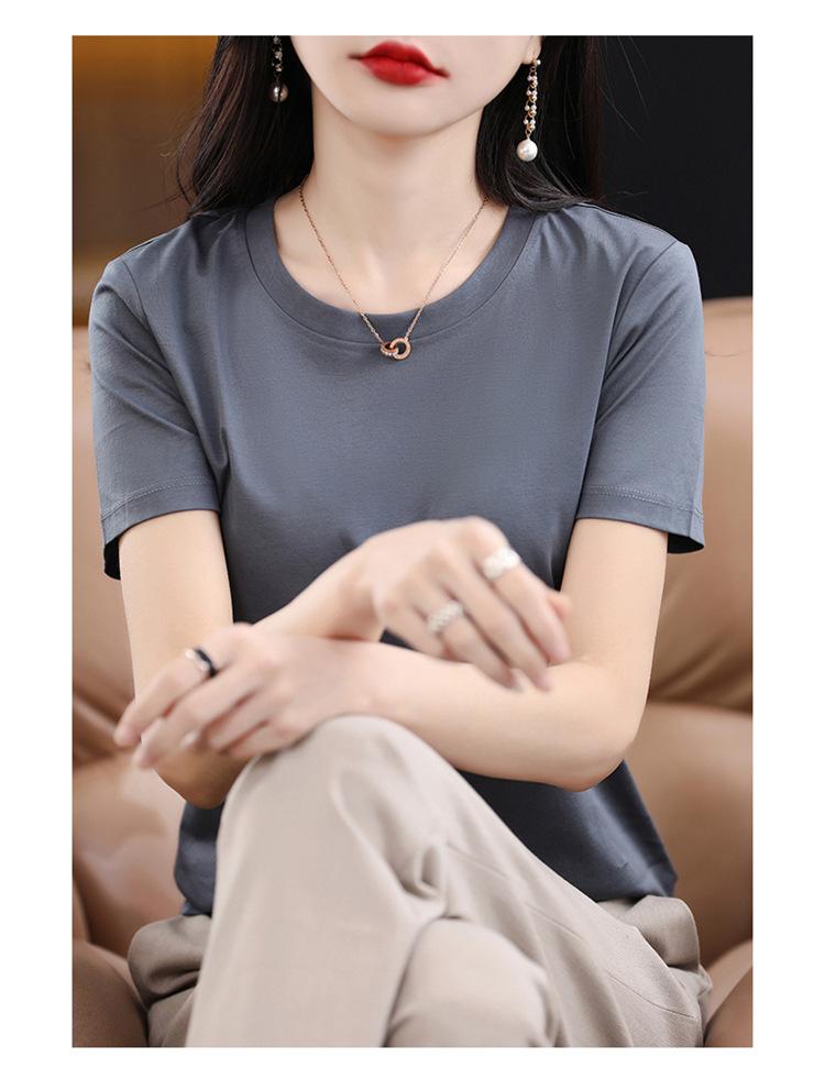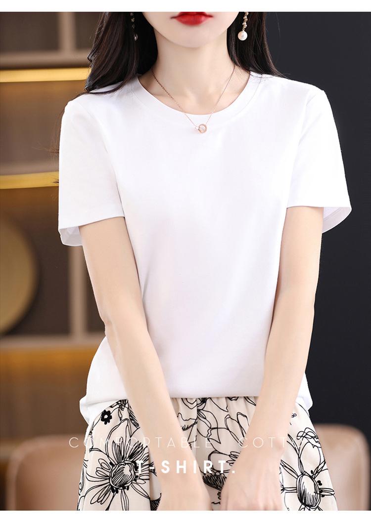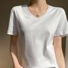 Camiseta de algodón mercerizado de manga corta para mujer, novedad de verano 24, cuello redondo, básica, de algodón puro, blanca, de algodón peinado.