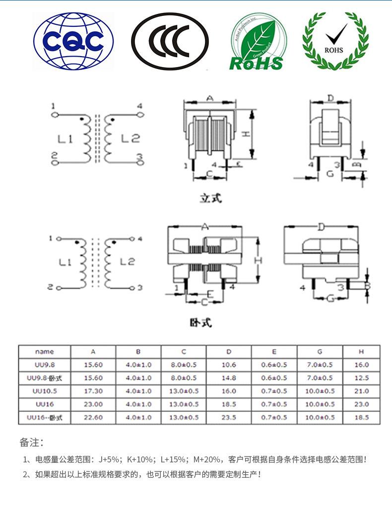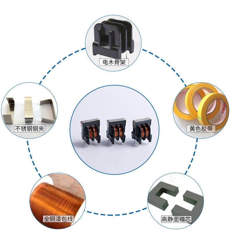 El fabricante suministra un inductor de modo común EE8.3, un filtro de modo común y un transformador de alta frecuencia enchufable vertical de 30 MH.