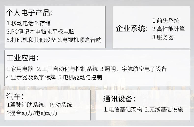 Applied to automotive electronics, televisions, DVD/VCD, telephones, electronic toys, mobile communication equ...