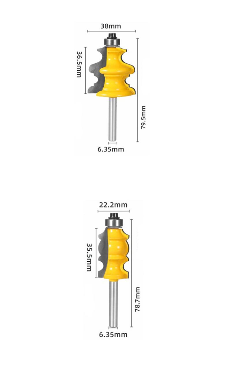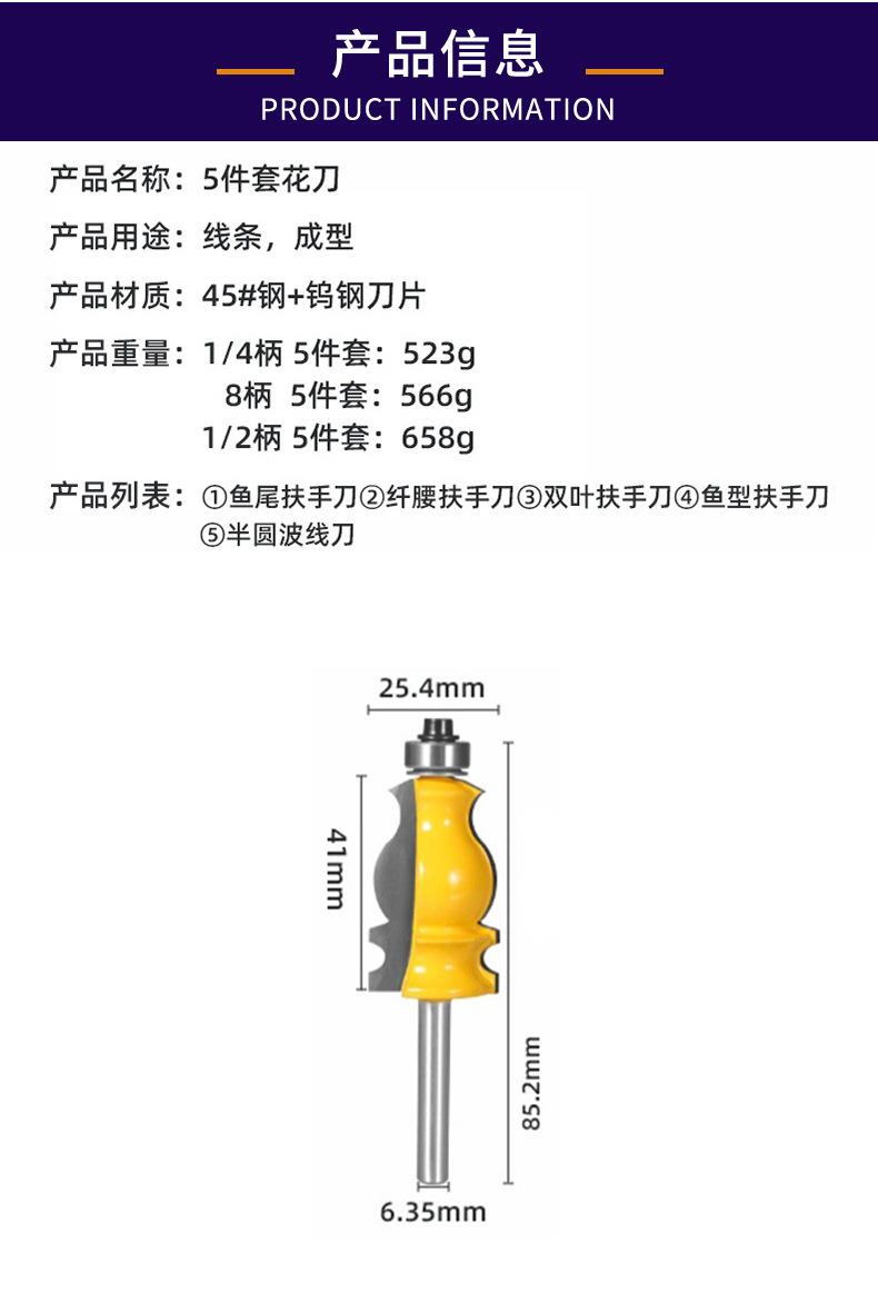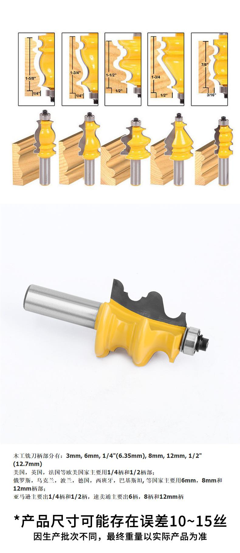 Juego de cinco piezas de fresa para pasamanos mango de 1/4 mango de 8 mango de 1/2 fresa para encaje fresa para línea superior de puerta de mueble fresa para carpintería